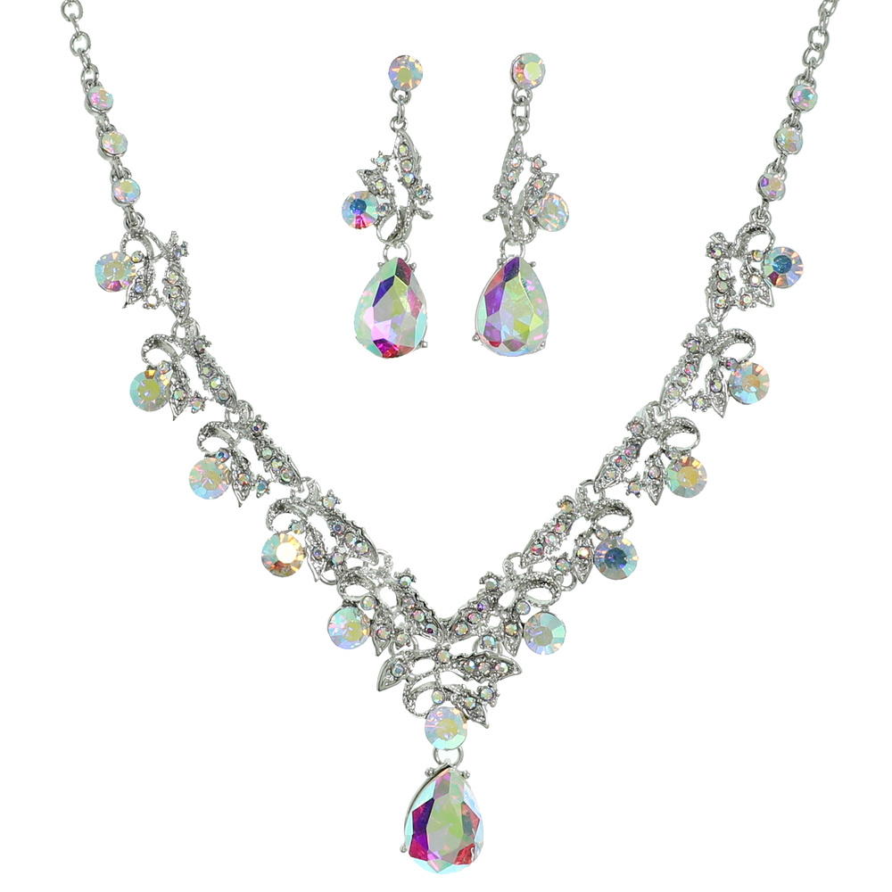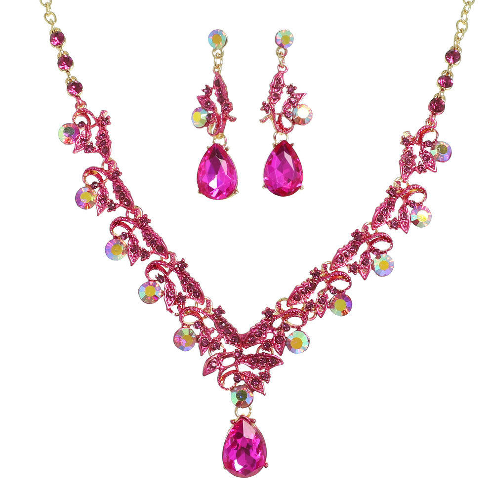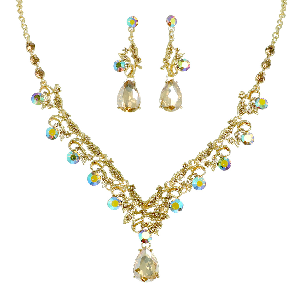 Vine Gemstone Cluster V-shaped Necklace Set