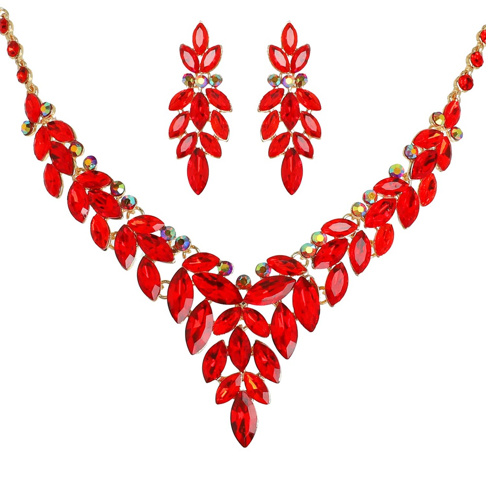 PETAL CUT CRYSTAL GEMSTONE CLUSTER V-SHAPED ADJUSTABLE NECKLACE EARRING SET
