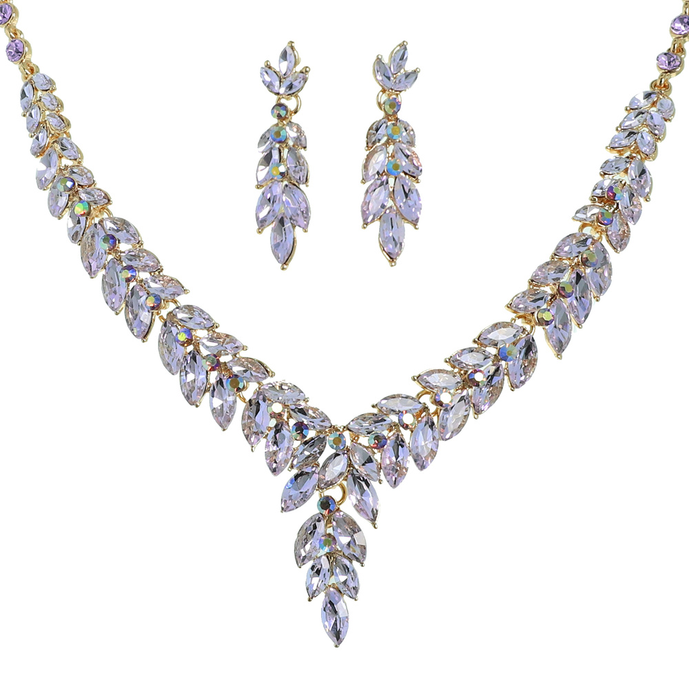 Vine Gemstone Cluster V-shaped Necklace Set