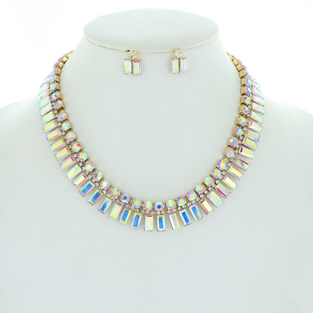 BAGUETTE CRYSTAL RHINESTONE NECKLACE EARRING SET