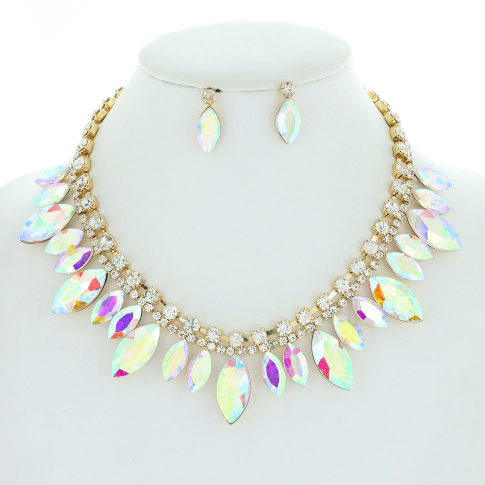 BAGUETTE CRYSTAL RHINESTONE NECKLACE EARRING SET