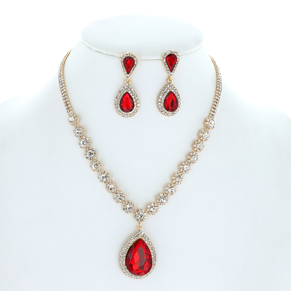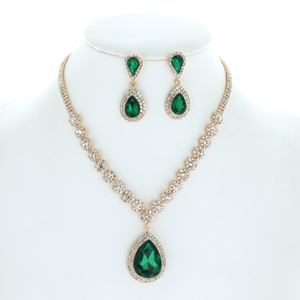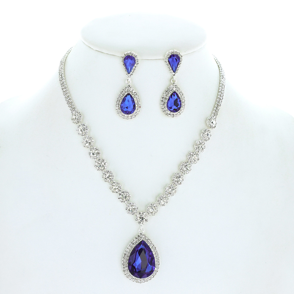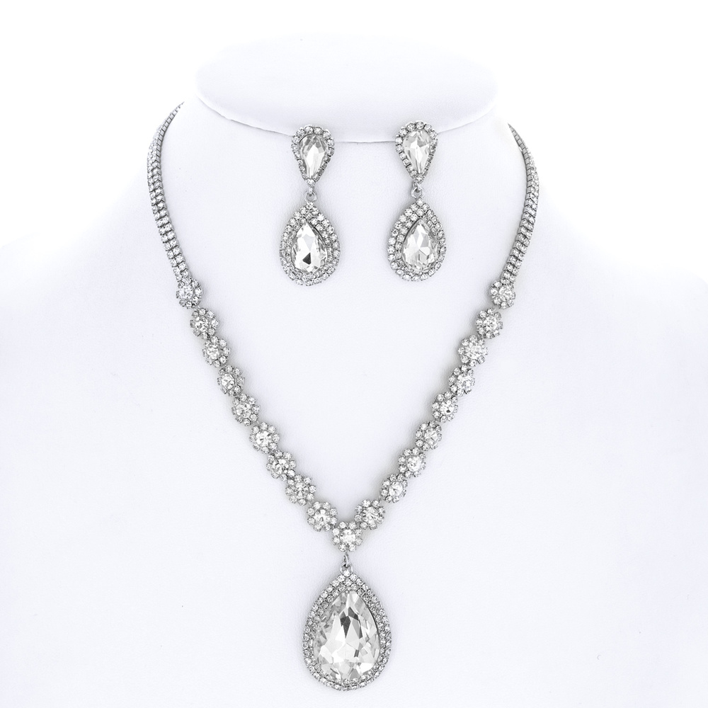 Crystal Pave Marquise Cluster Adjustable Bib Necklace Earring Set