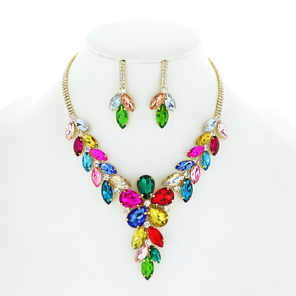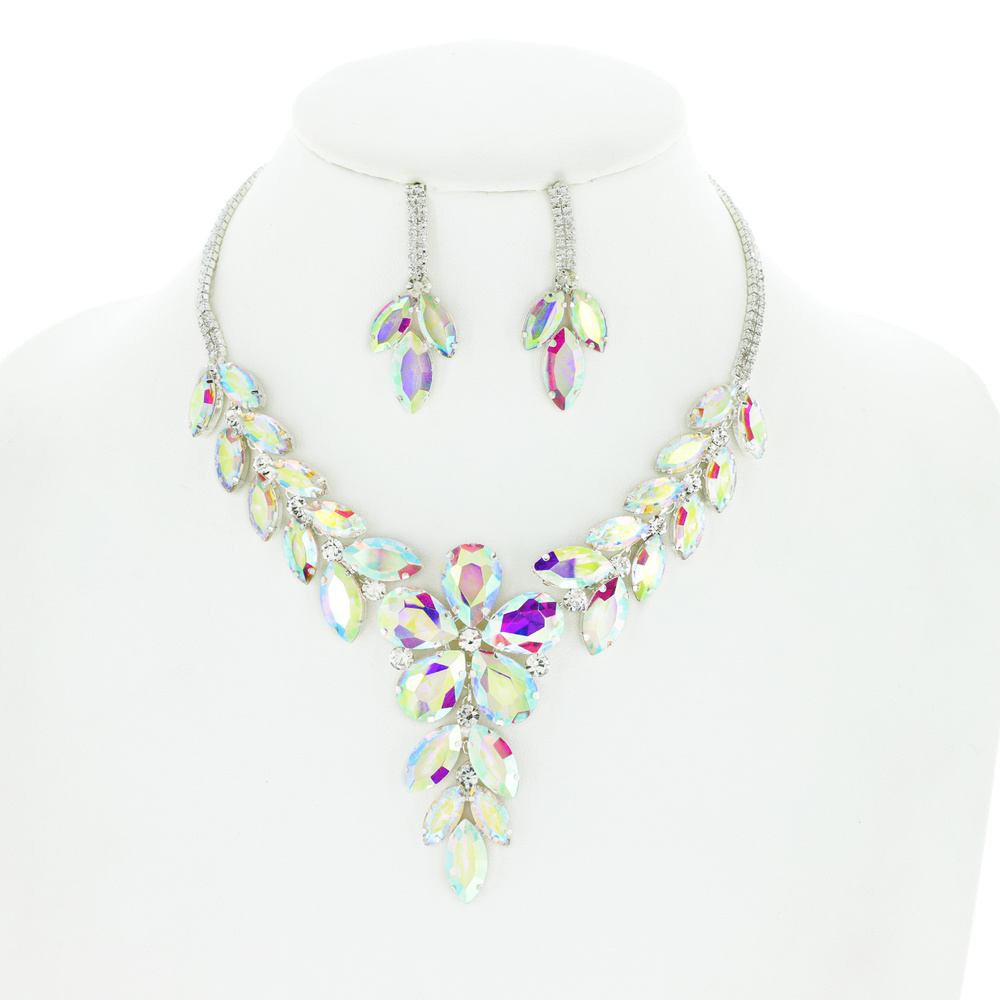 Crystal Marquise Cluster Adjustable Lariat Necklace Earring Set
