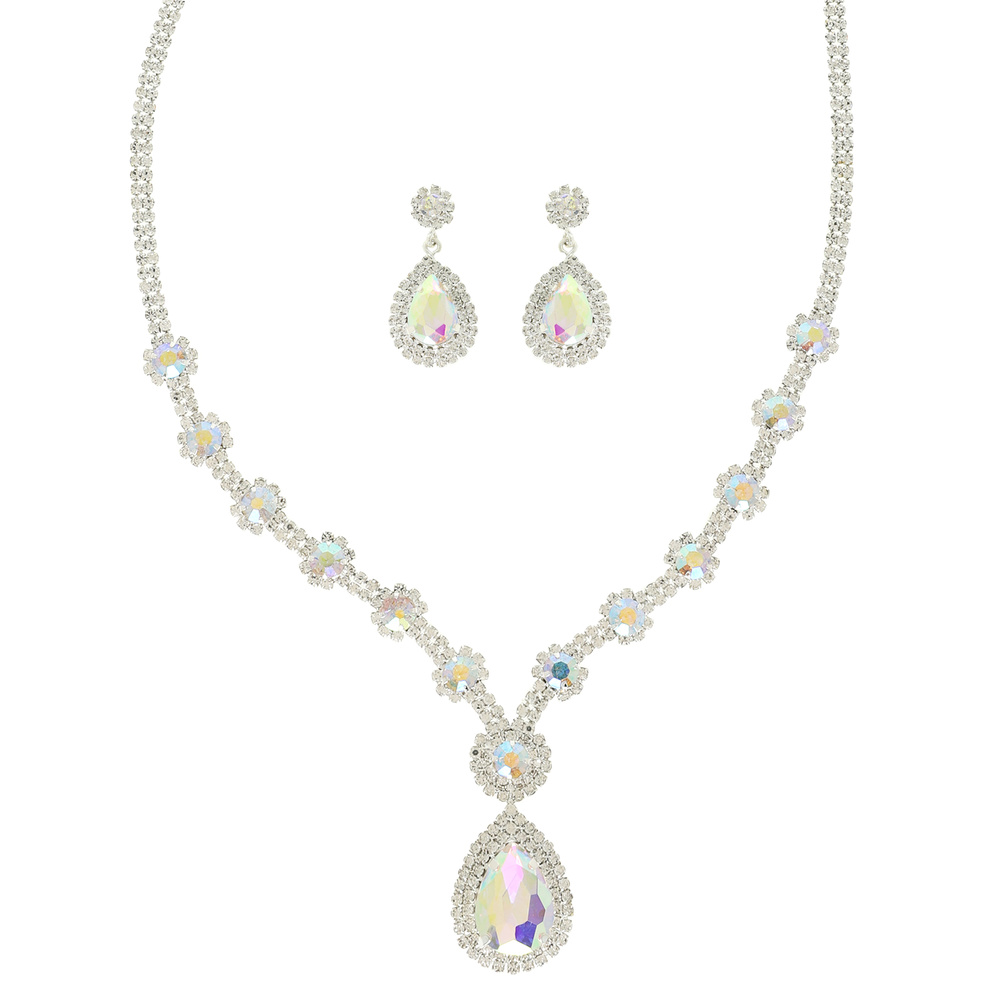 RHINESTONE PAVE CRYSTAL TEARDROP STATEMENT DROP NECKLACE EARRING SET