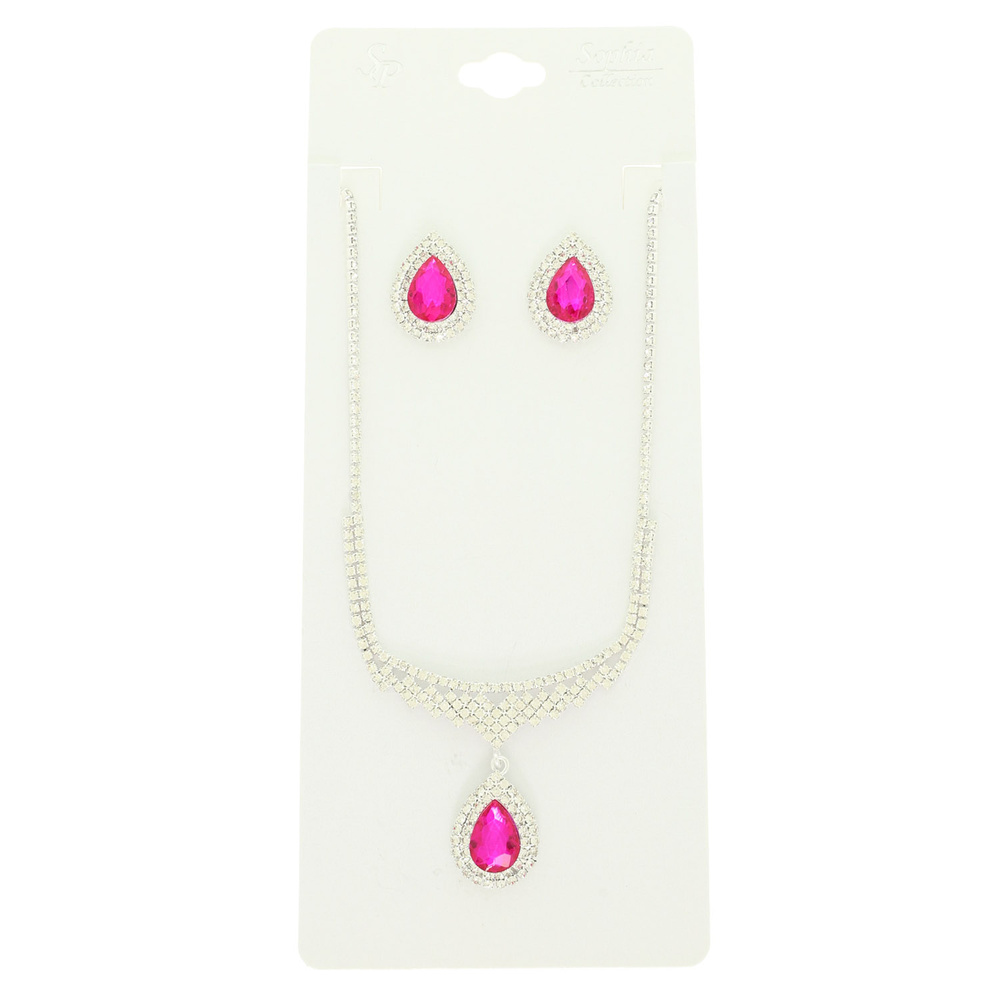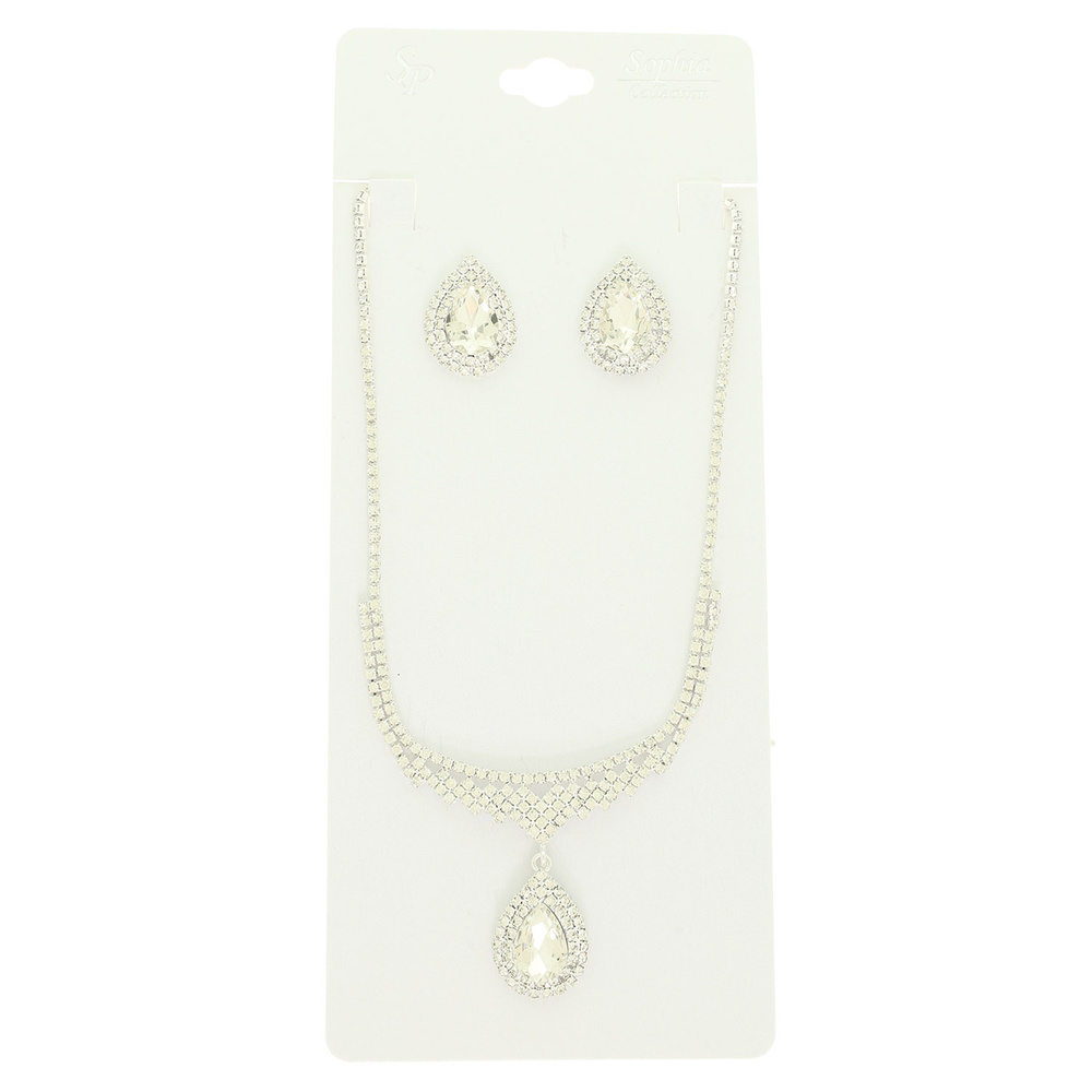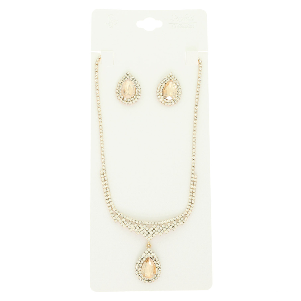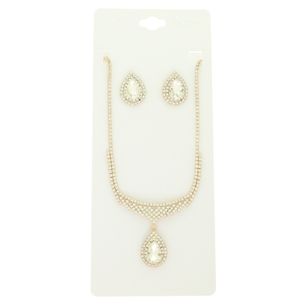 Crystal Teardrop Necklace Set