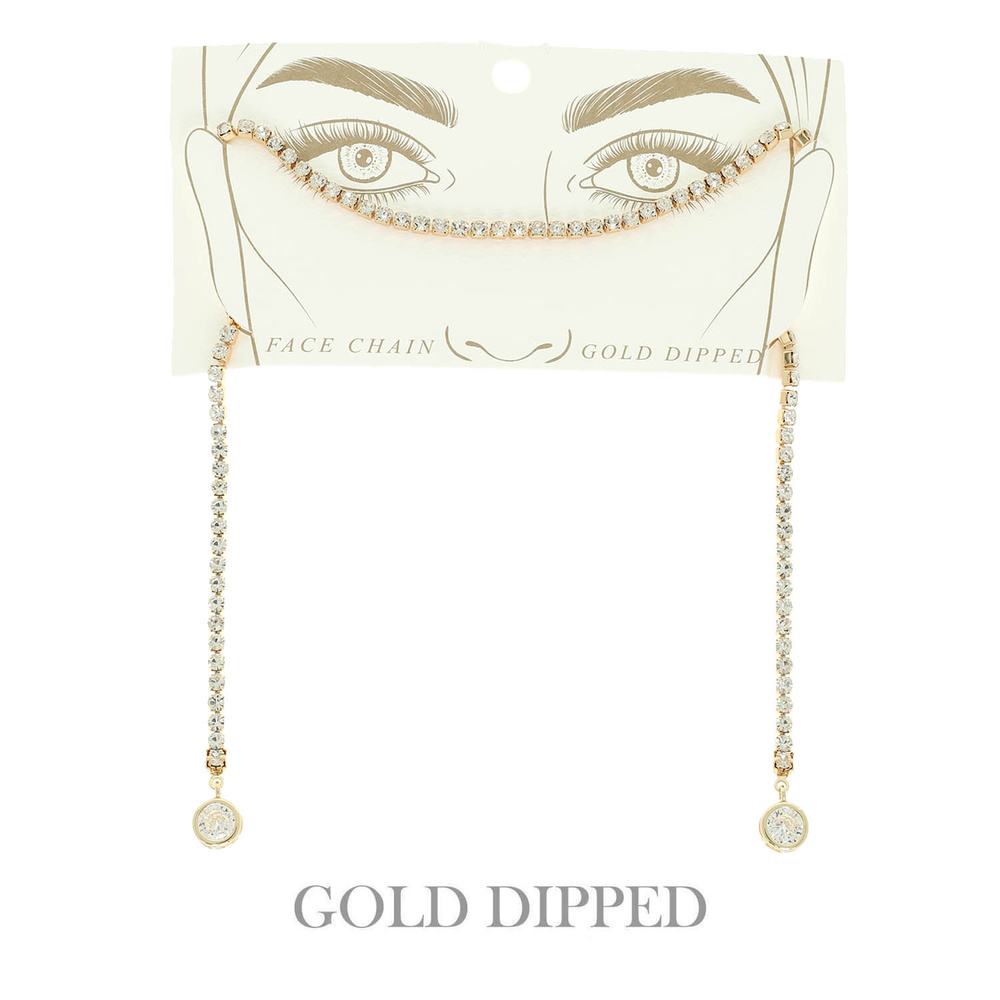 GOLD PLATED BEZEL-SET CRYSTAL TENNIS FACE-CHAIN IN YELLOW GOLD PLATING