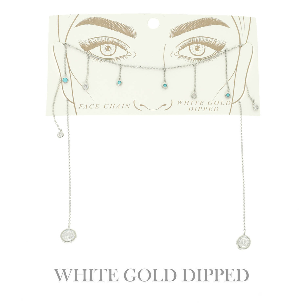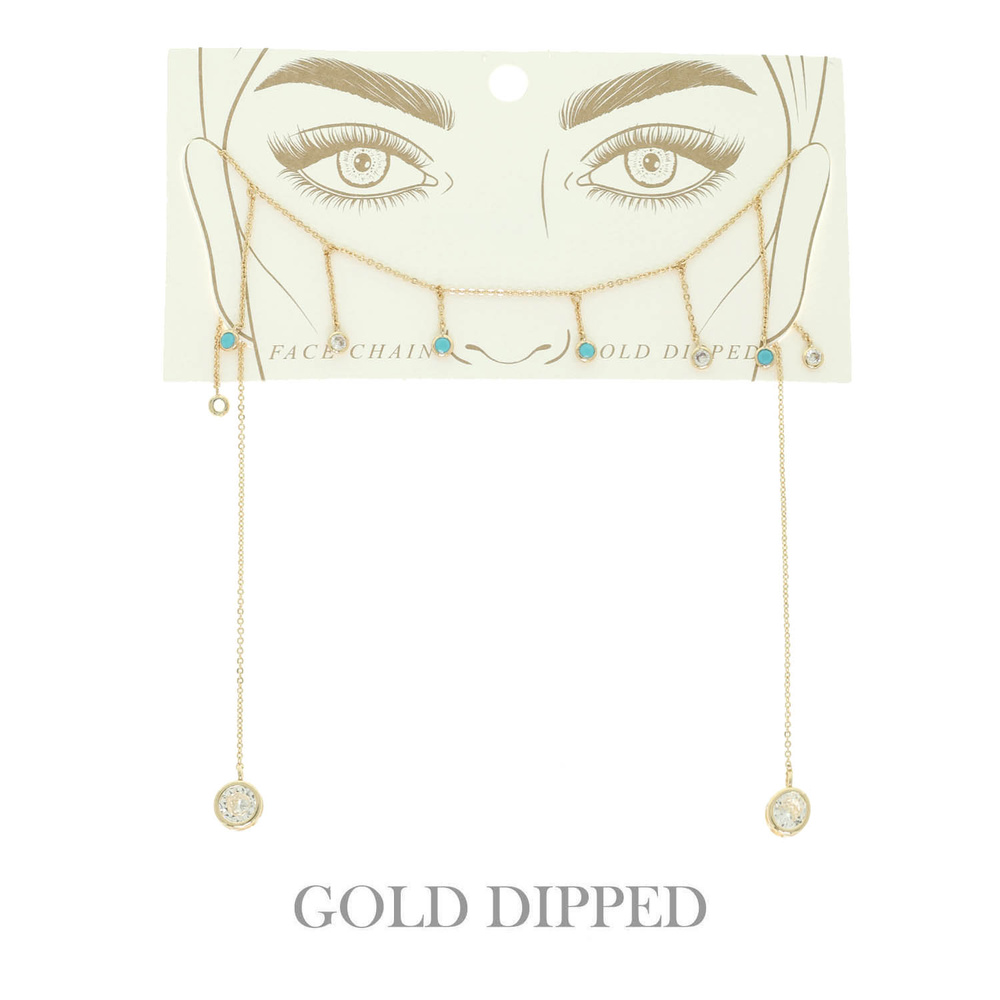 TURQUOISE EMBELLISHED BEZEL-SET CRYSTAL FACE-CHAIN IN YELLOW GOLD PLATING