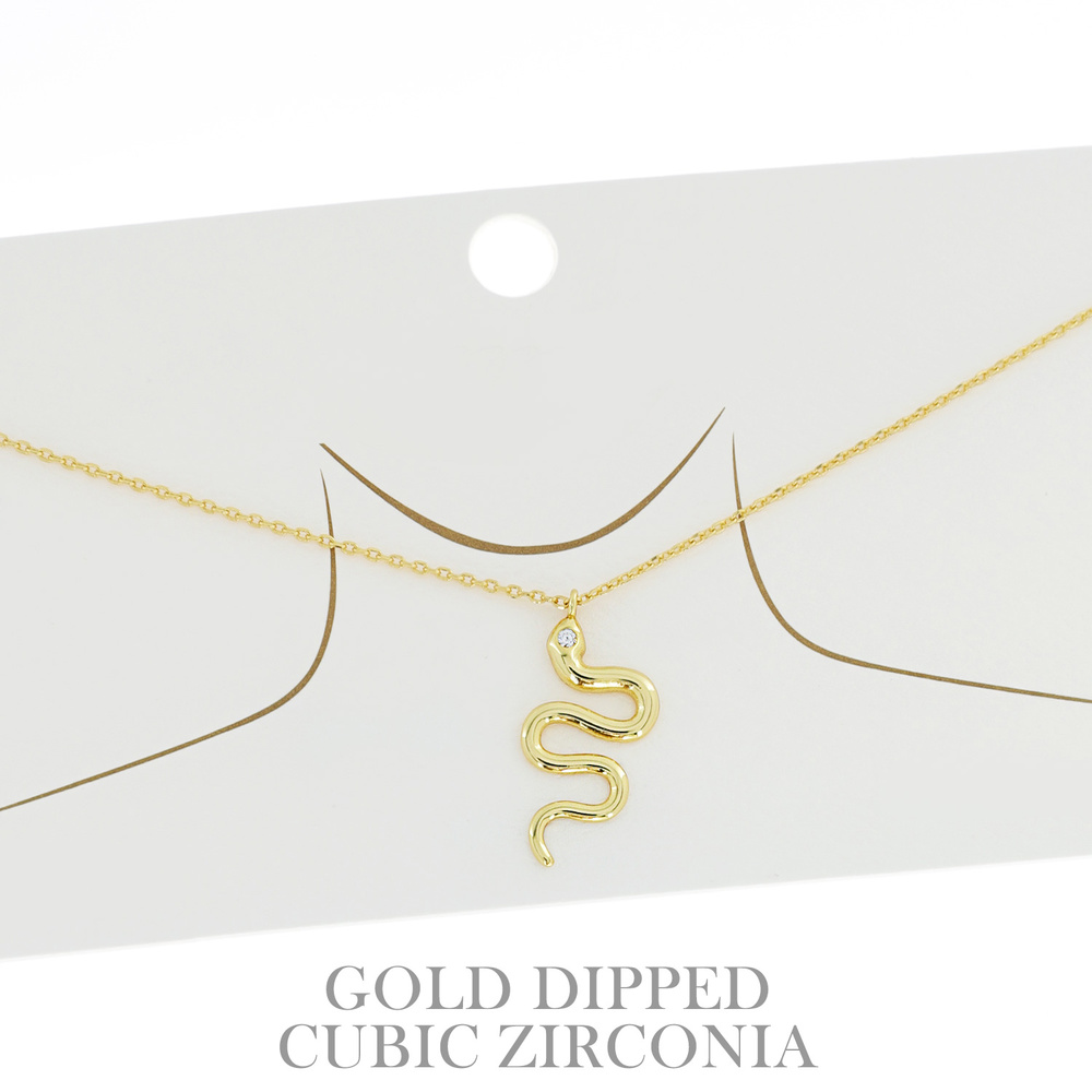 15" GOLD PLATED CUBIC ZIRCONIA PAVE ADJUSTABLE SNAKE PENDANT NECKLACE IN WHITE AND YELLOW GOLD PLATTING made in KOREA