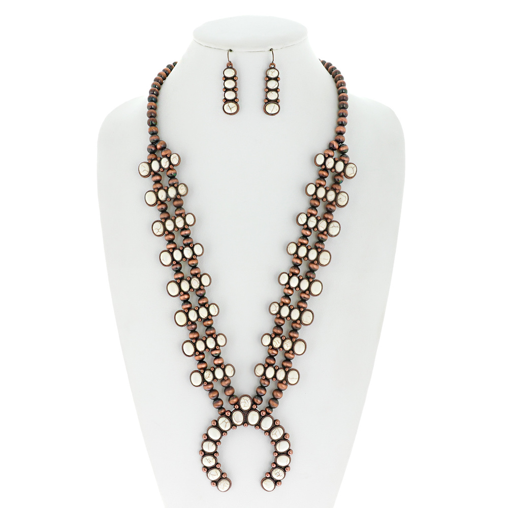 Western Squash Blossom Navajo Pearl Adjustable Turquoise Semi Stone Necklace Earring Set