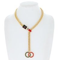CRYSTAL RHINESTONE PAVE FASHIONISTA ENAMEL COATED LIPSTICK CUBAN CHAIN LINK LARIAT NECKLACE