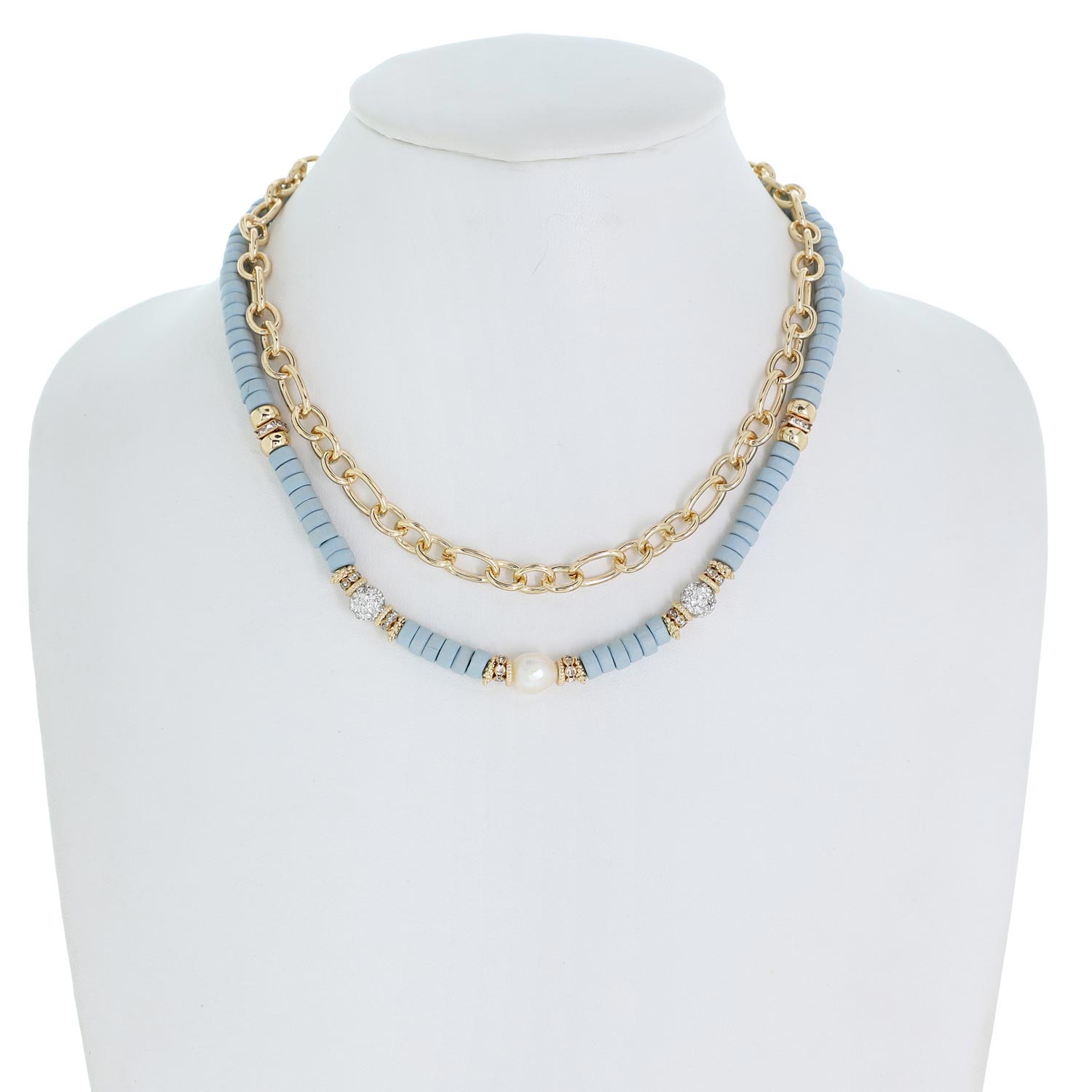 2-row Multi Strand Disc Beaded Adjustable Chain Necklace