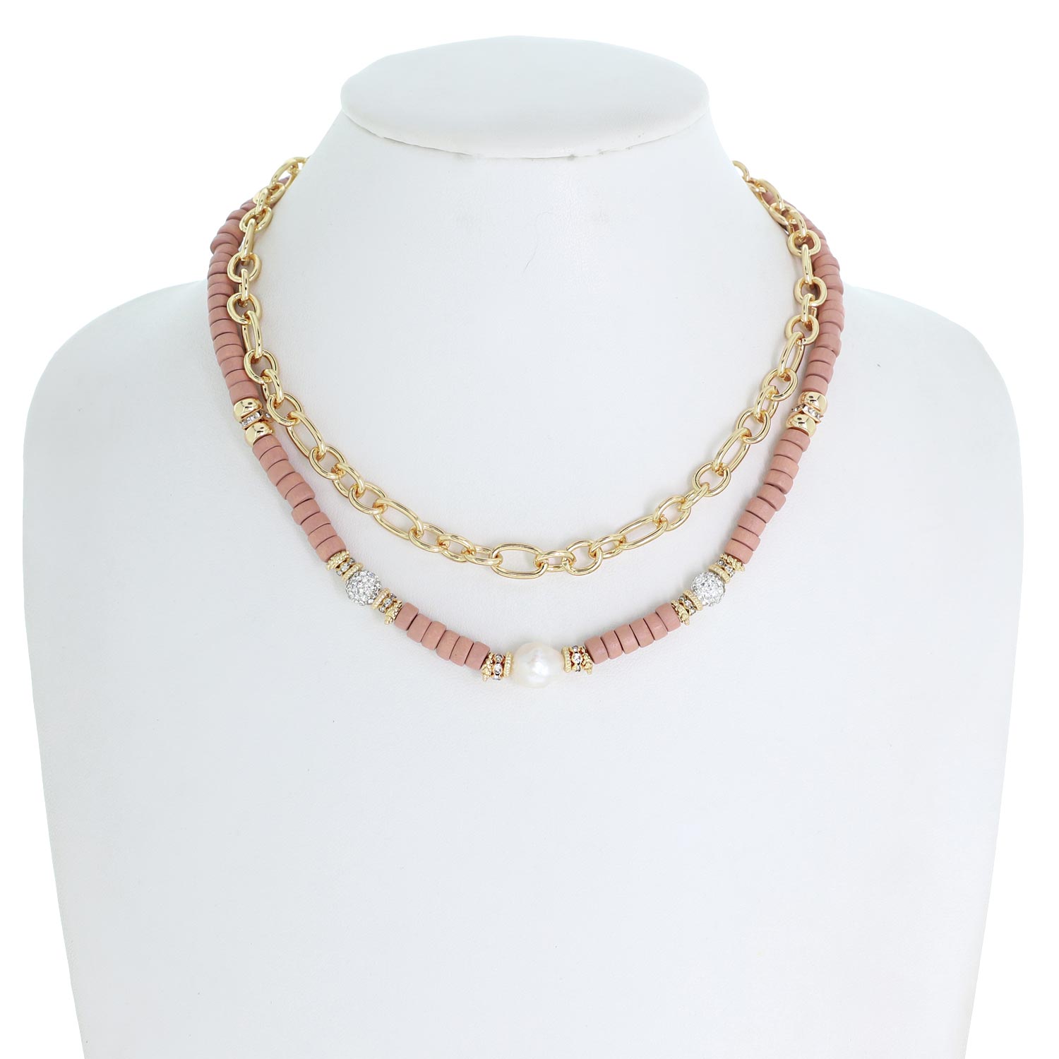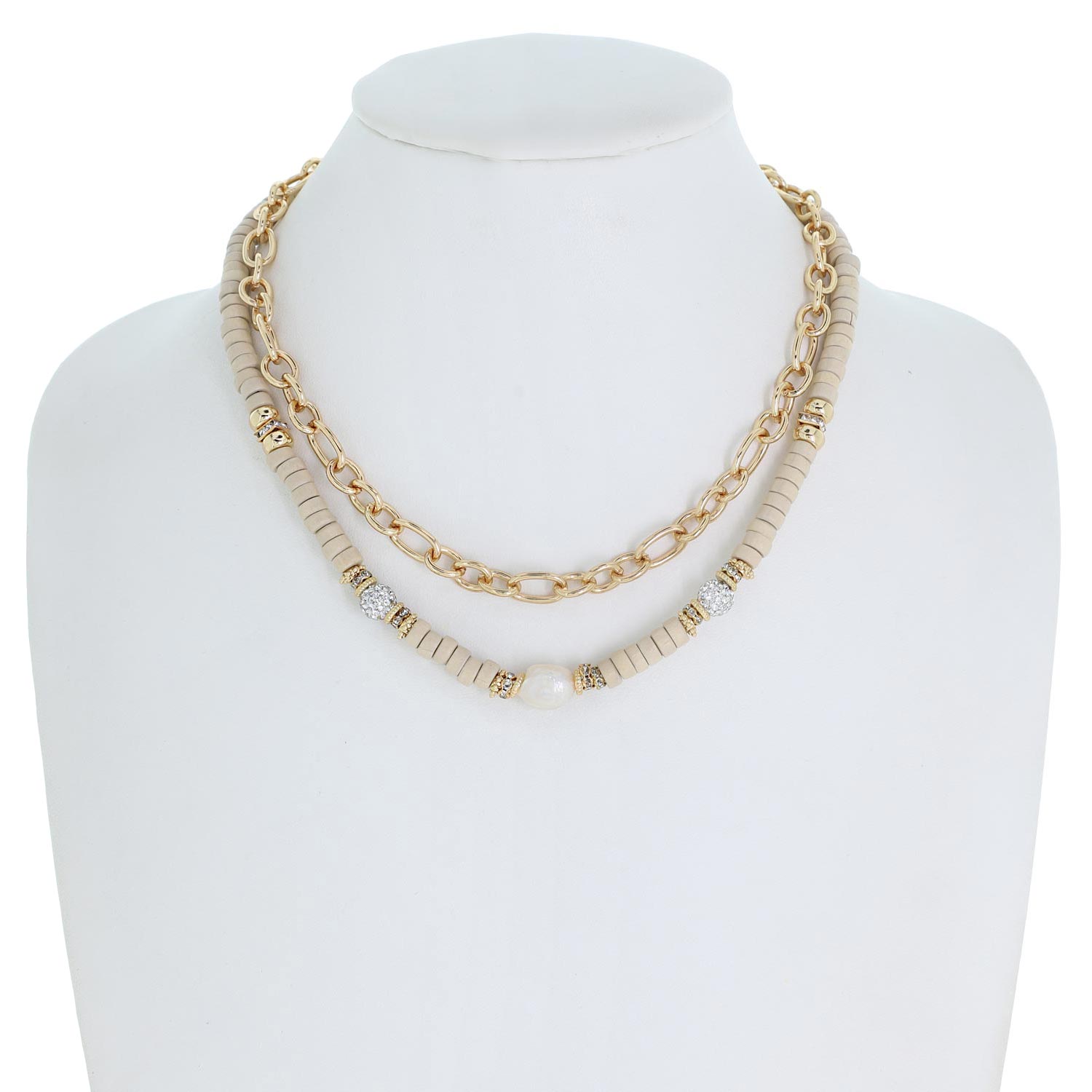2-ROW MULTI STRAND DISC BEADED ADJUSTABLE CHAIN NECKLACE