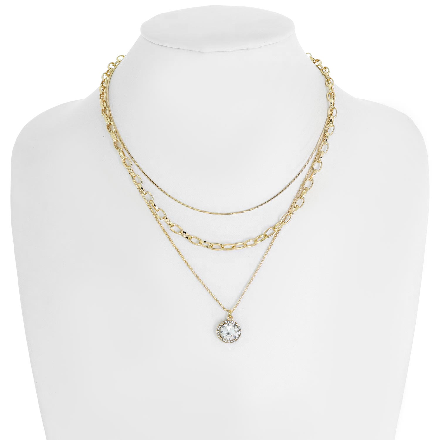 3-row Multi Strand Adjustable Solitaire Pendant Chain Necklace