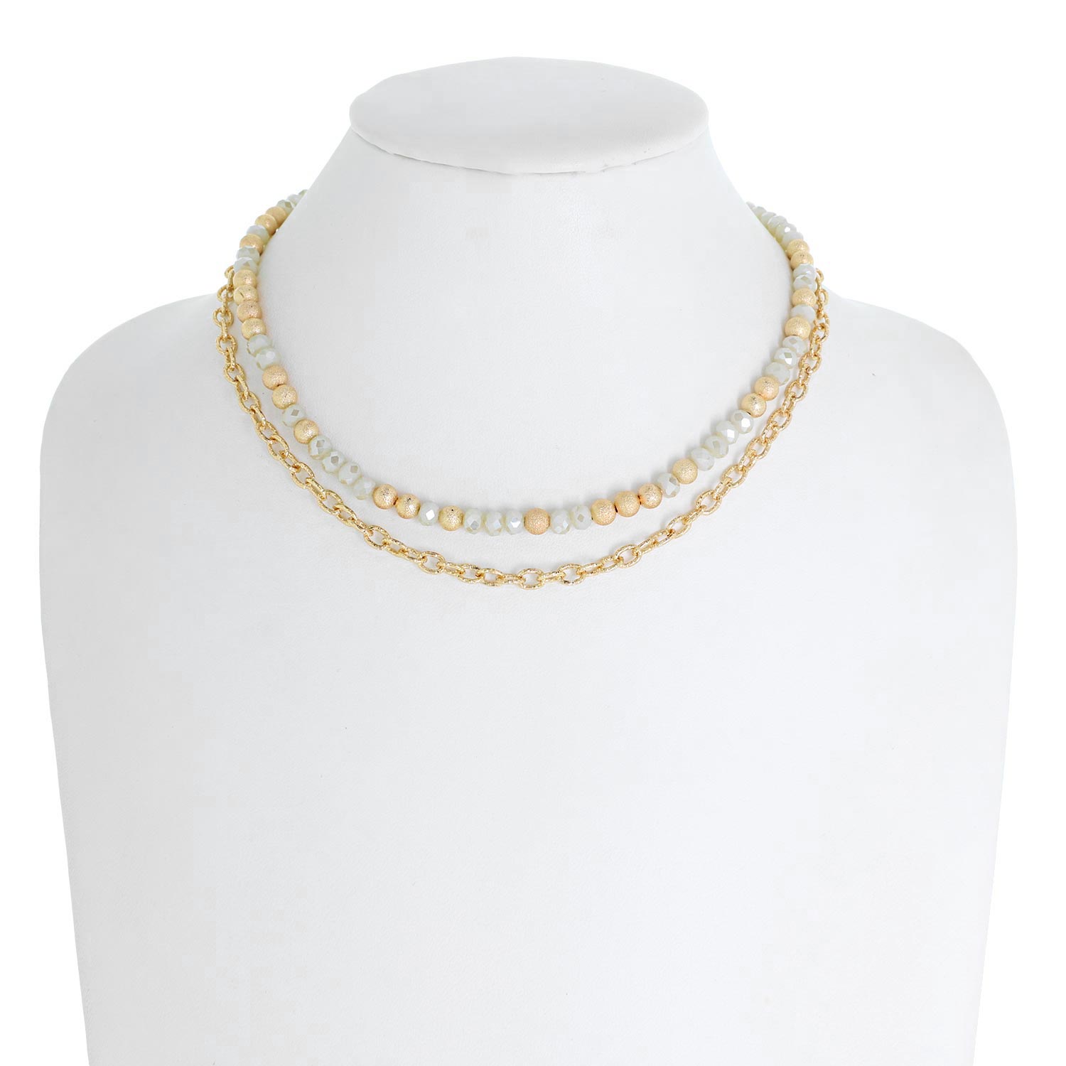 2-row Multi Strand Beaded Adjustable Chain Necklace