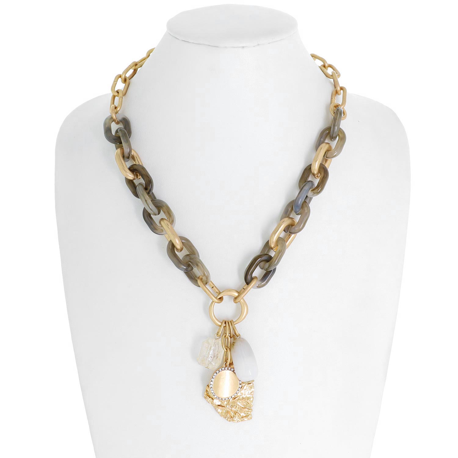 BOHEMIAN MULTI CHARM ACRYLIC PAPERCLIP CHAIN LINK ADJUSTABLE NECKLACE