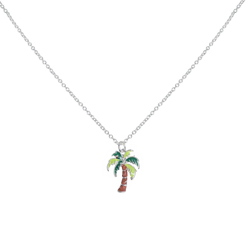 PALM TREE ENAMEL COATED ADJUSTABLE PENDANT NECKLACE IN SILVER TONE METAL