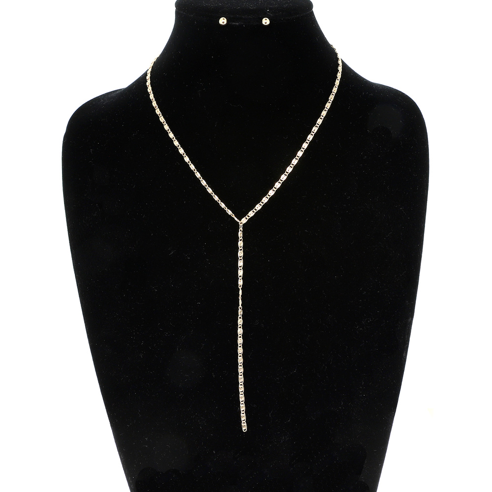 16" ADJUSTABLE LARIAT CHAIN NECKLACE AND STUD EARRING SET IN GOLD TONE METAL