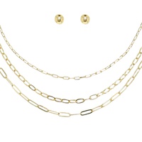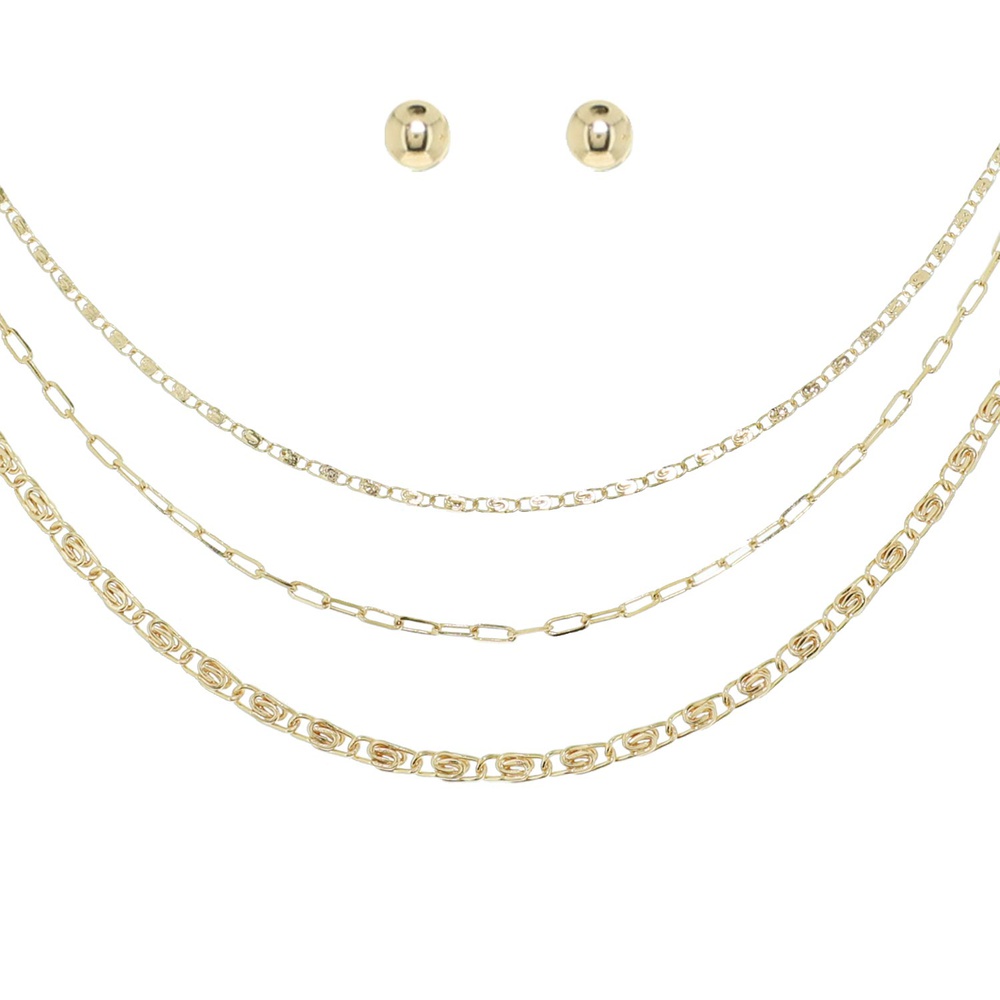16.5" MULTI STRAND ADJUSTABLE CHAIN NECKLACE AND STUD EARRING SET IN GOLD TONE METAL