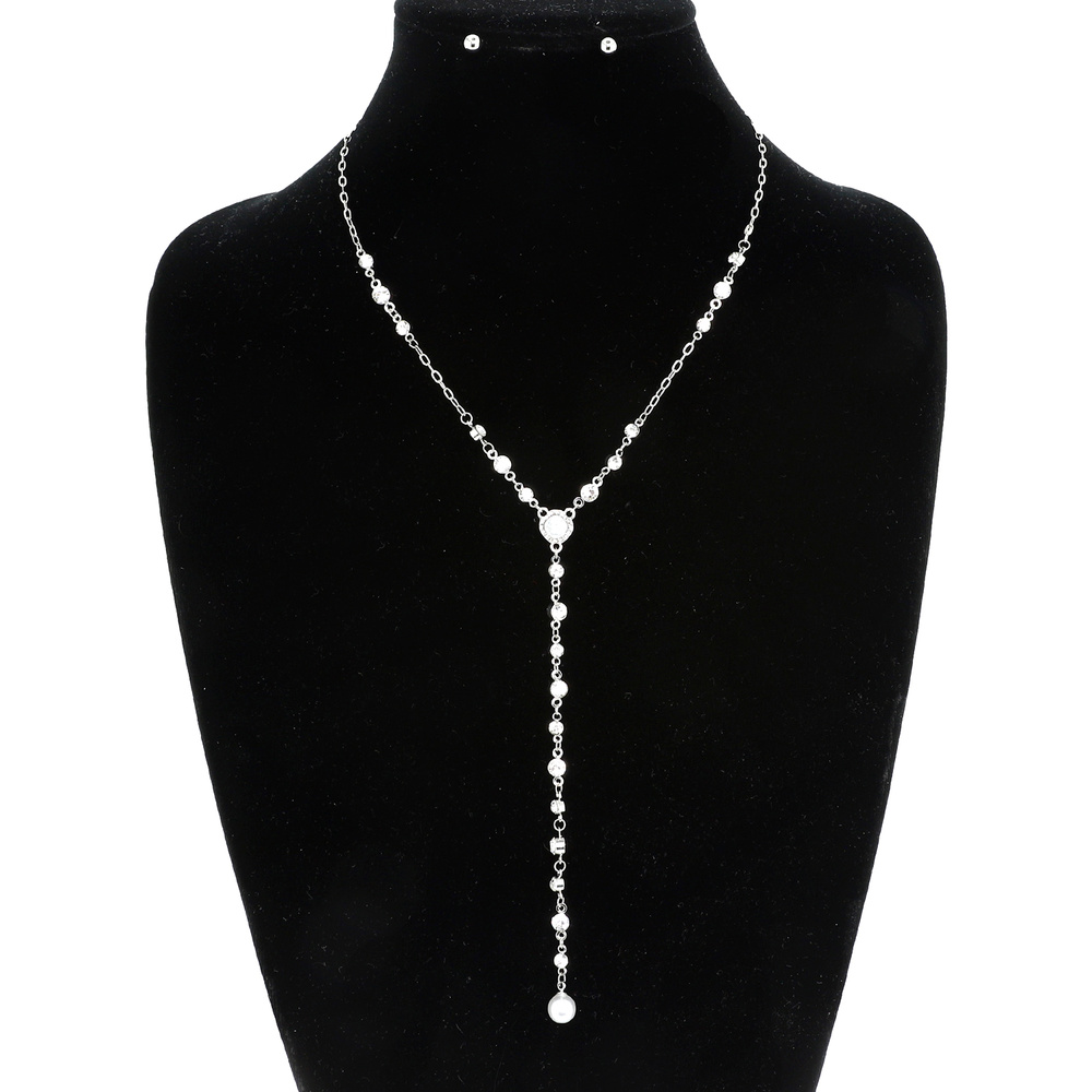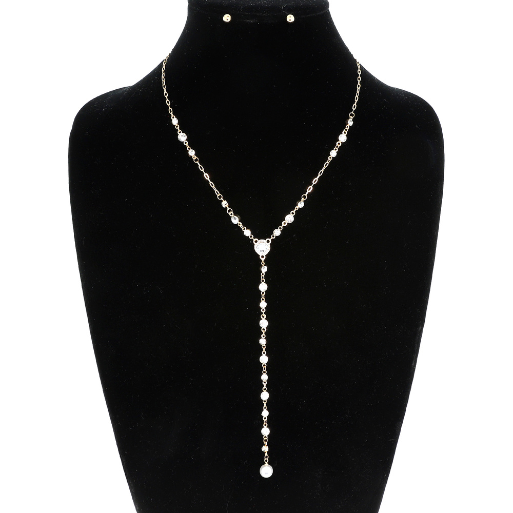 18" ADJUSTABLE LARIAT STATION CHAIN NECKLACE AND STUD EARRING SET IN GOLD TONE METAL