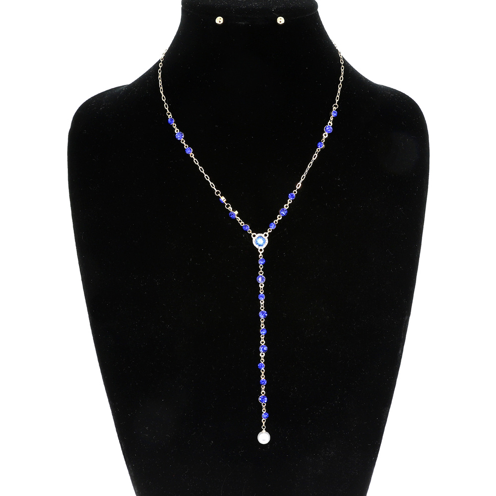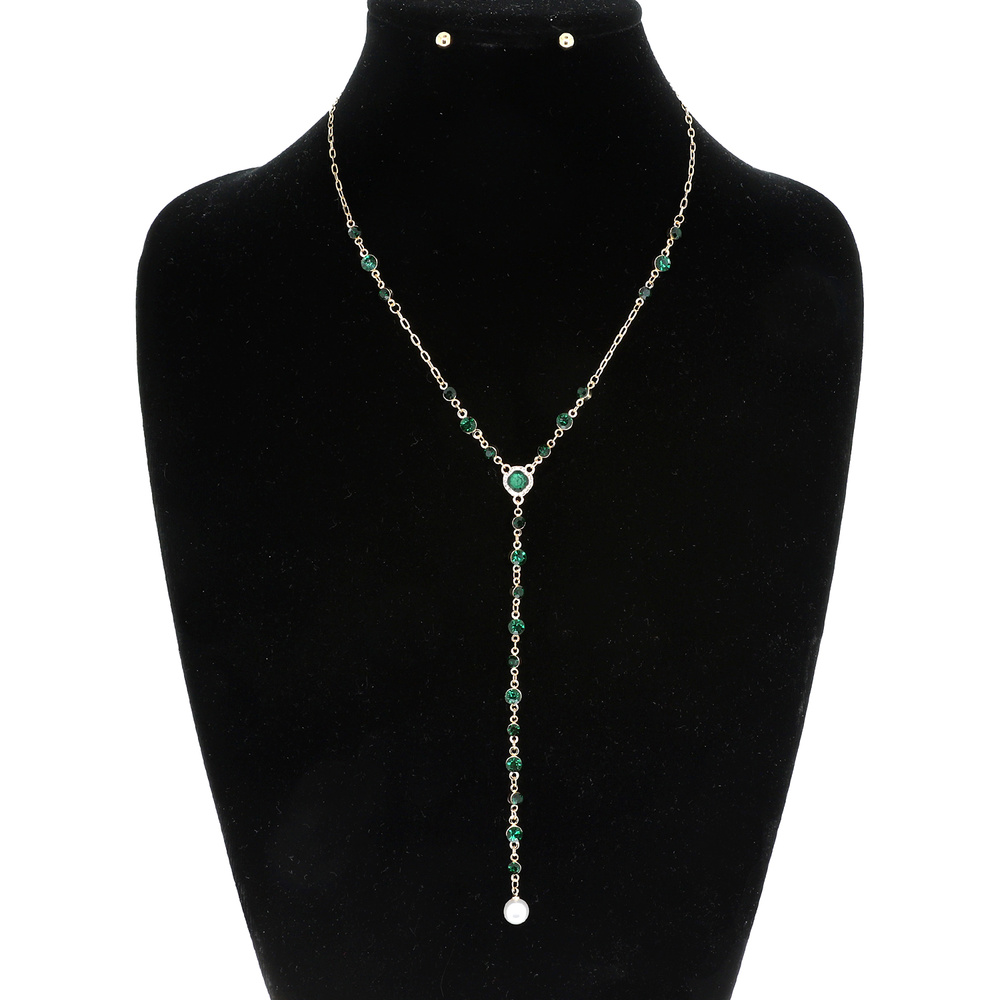 Gold Tone Lariat Station Chain Necklace Set