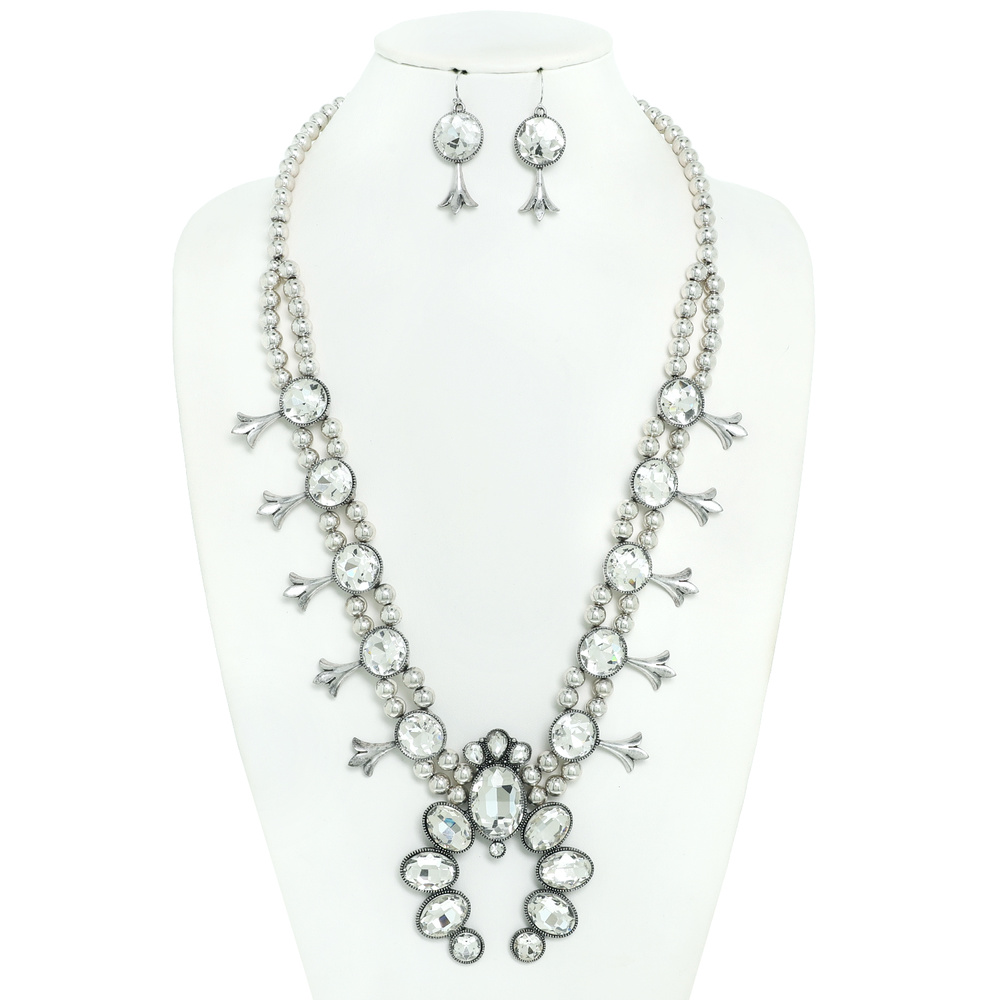 Western Crystal Squash Blossom Chain Necklace Set