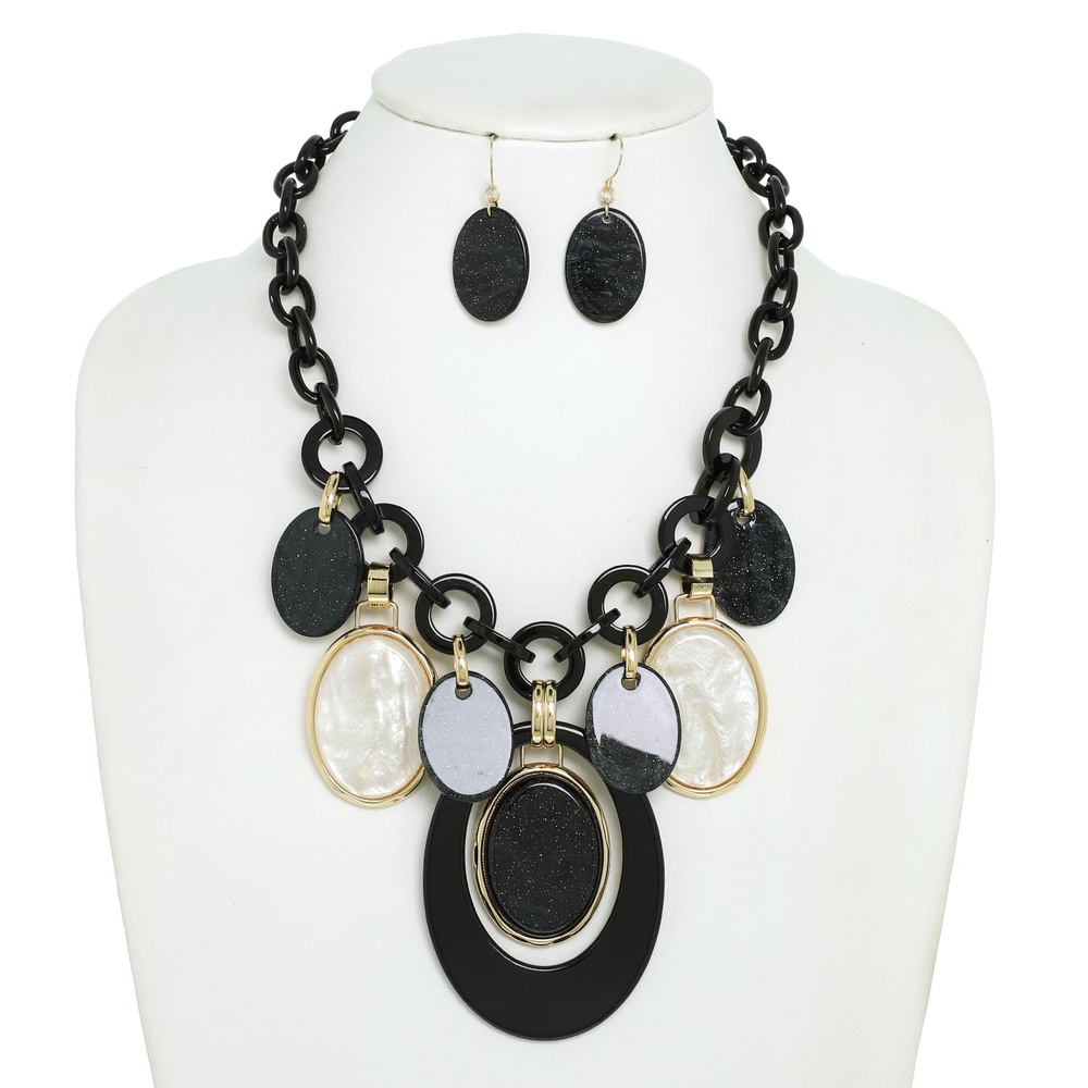 Oval Acetate Chain Link Bib Necklace Set