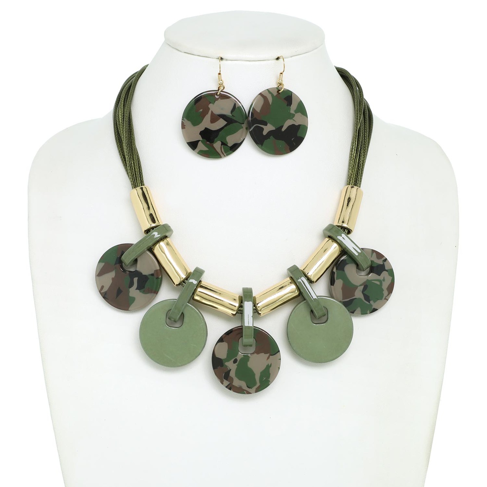 Acetate Disc Fringe Beaded Cord Bib Necklace Set