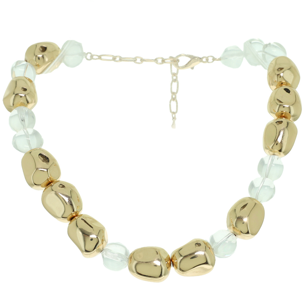 BALL BEADED ADJUSTABLE COLLAR NECKLACE WITH LOBSTER CLAW CLASP