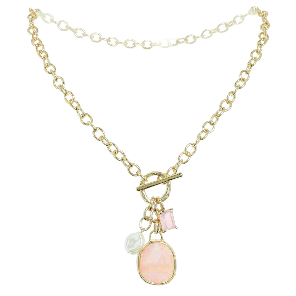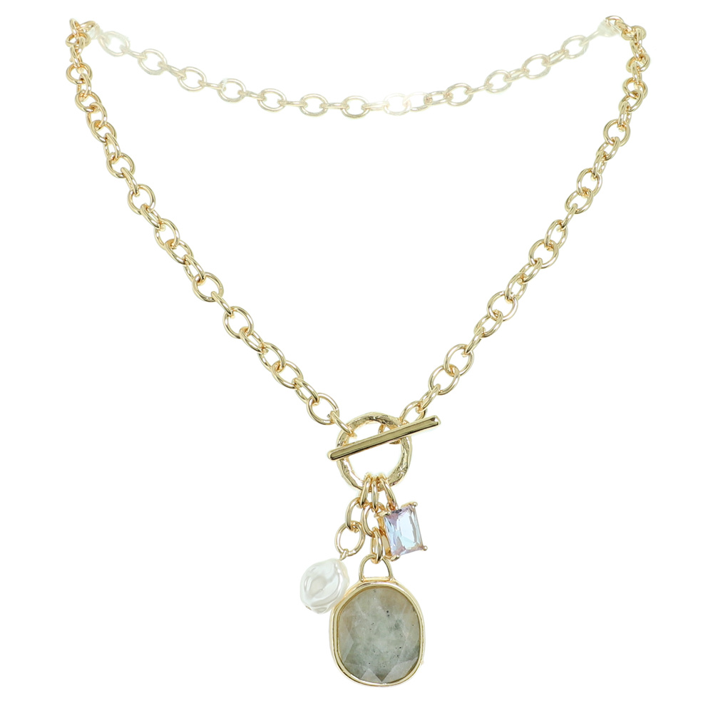 ASSORTED GEMSTONE PENDANT T-BAR NECKLACE