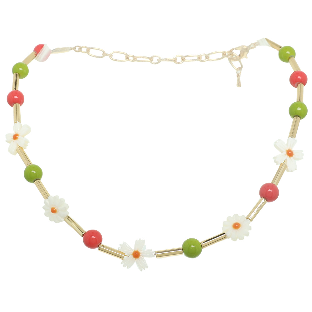 MULTI-COLORED FLORAL BEADED ADJUSTABLE CHOKER NECKLACE