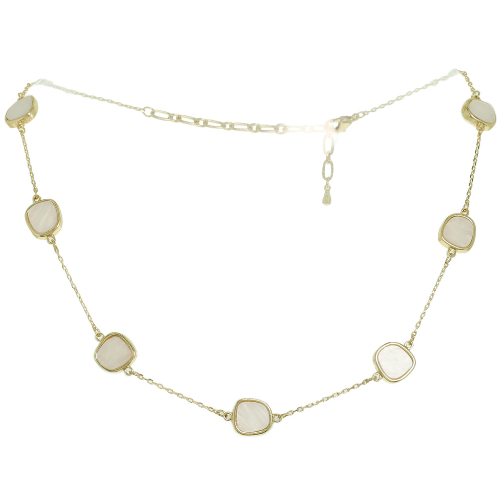 BEZEL SET IRREGULAR STONE STATION CHAIN NECKLACE
