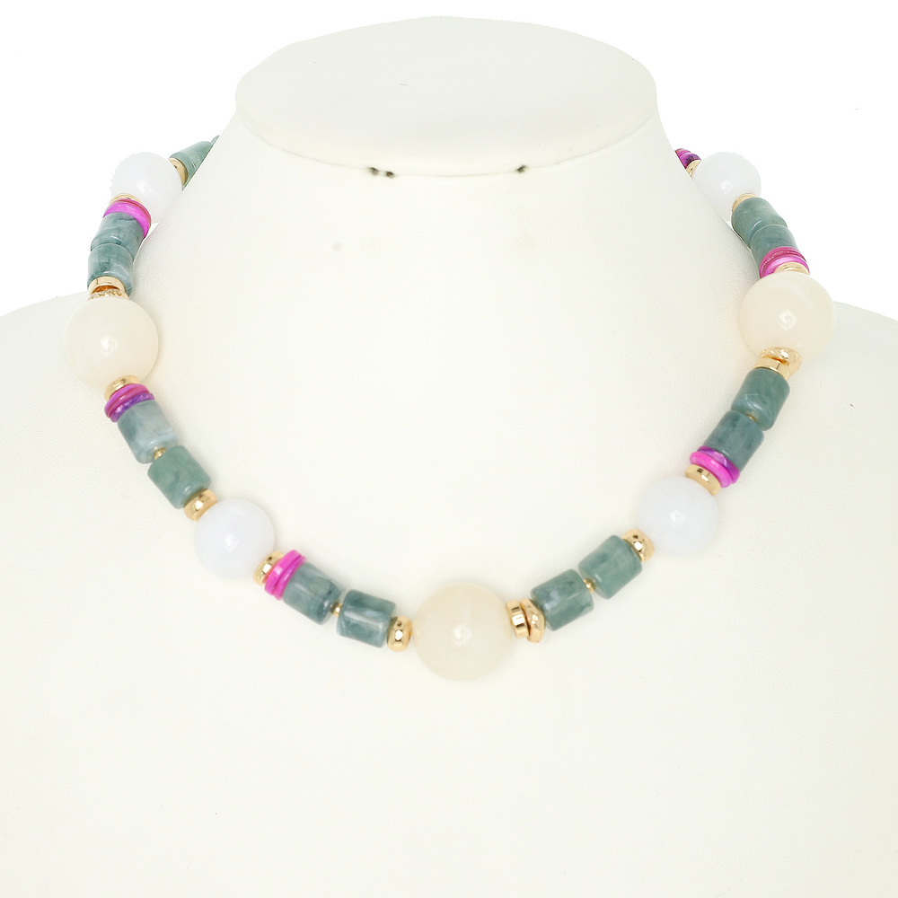 Multicolored Imitation Stone Bead Mala Necklace