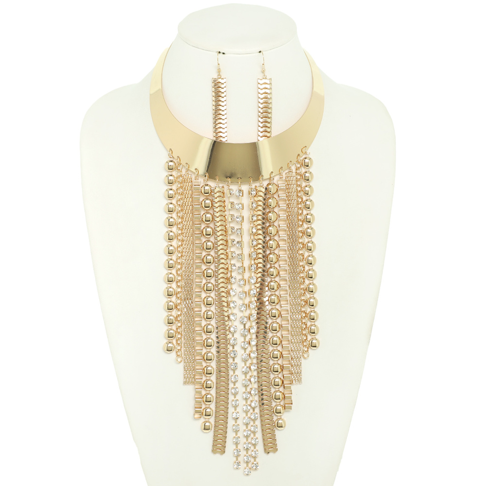 CHOKER STYLE ASSORTED CHAIN RHINESTONE FRINGE NECKLACE EARRING SET