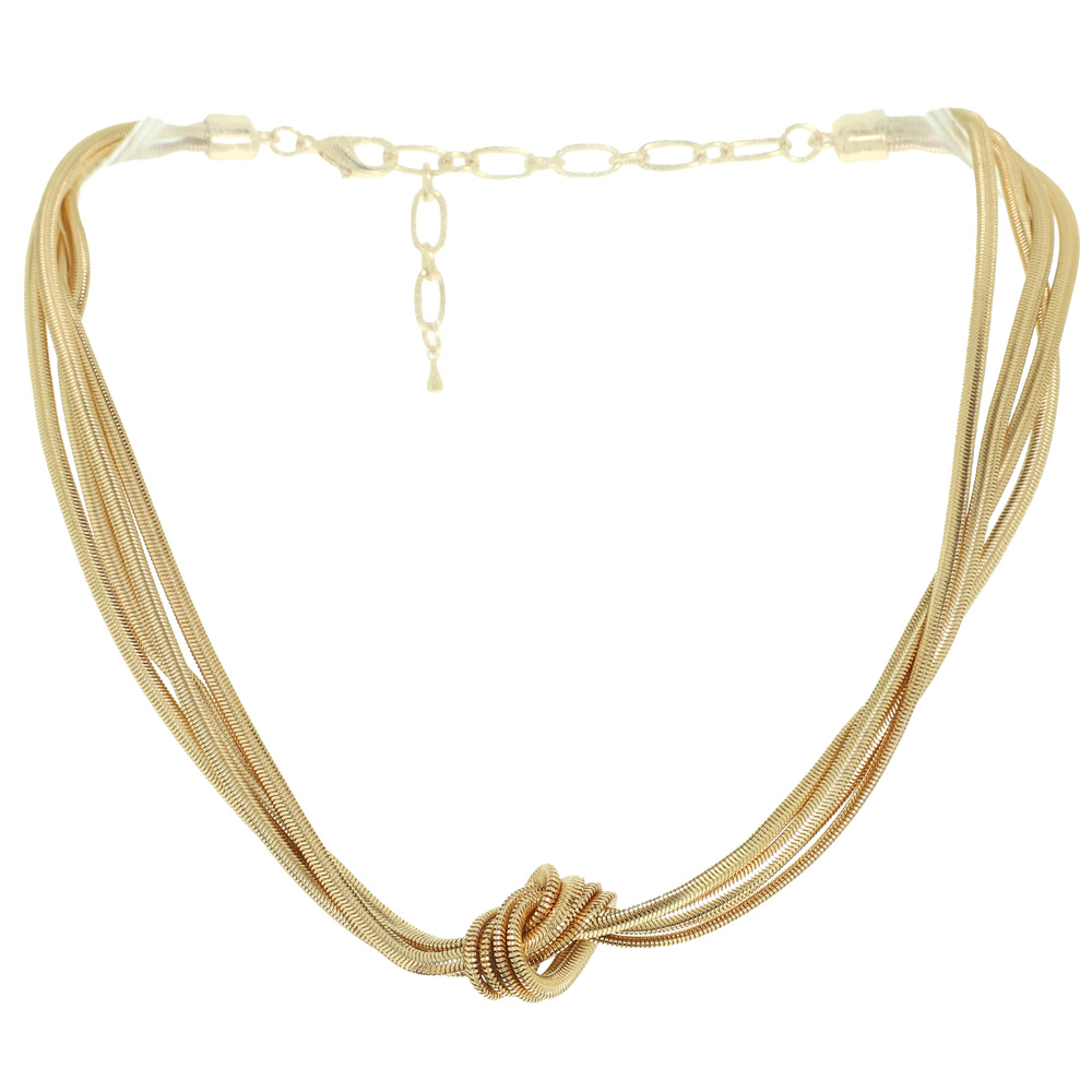 METALLIC MULTISTRAND KNOTTED ROPE CHAIN COLLAR NECKLACE