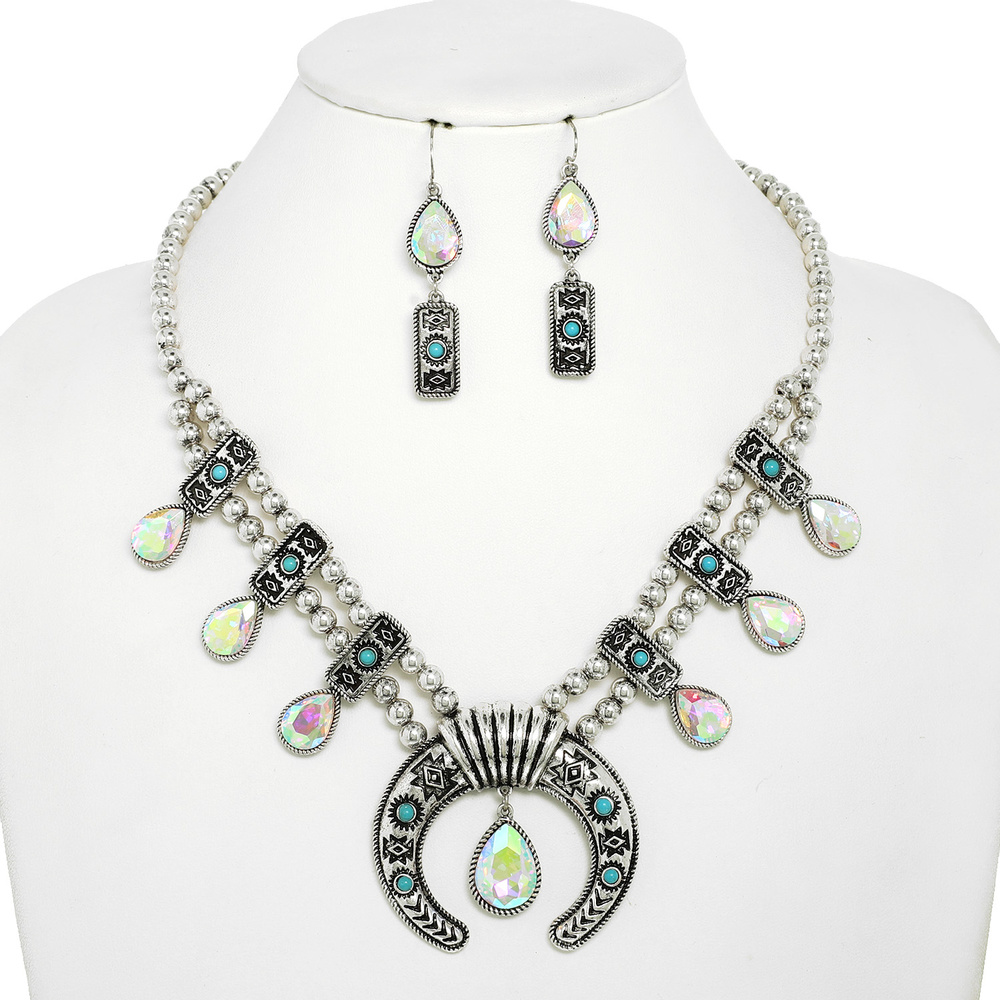WESTERN SEMI PRECIOUS STONE SQUASH BLOSSOM NECKLACE EARRING SET