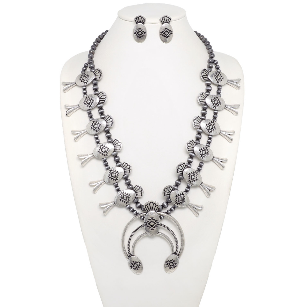 WESTERN FAN CHARMS SQUASH BLOSSOM NECKLACE EARRING SET