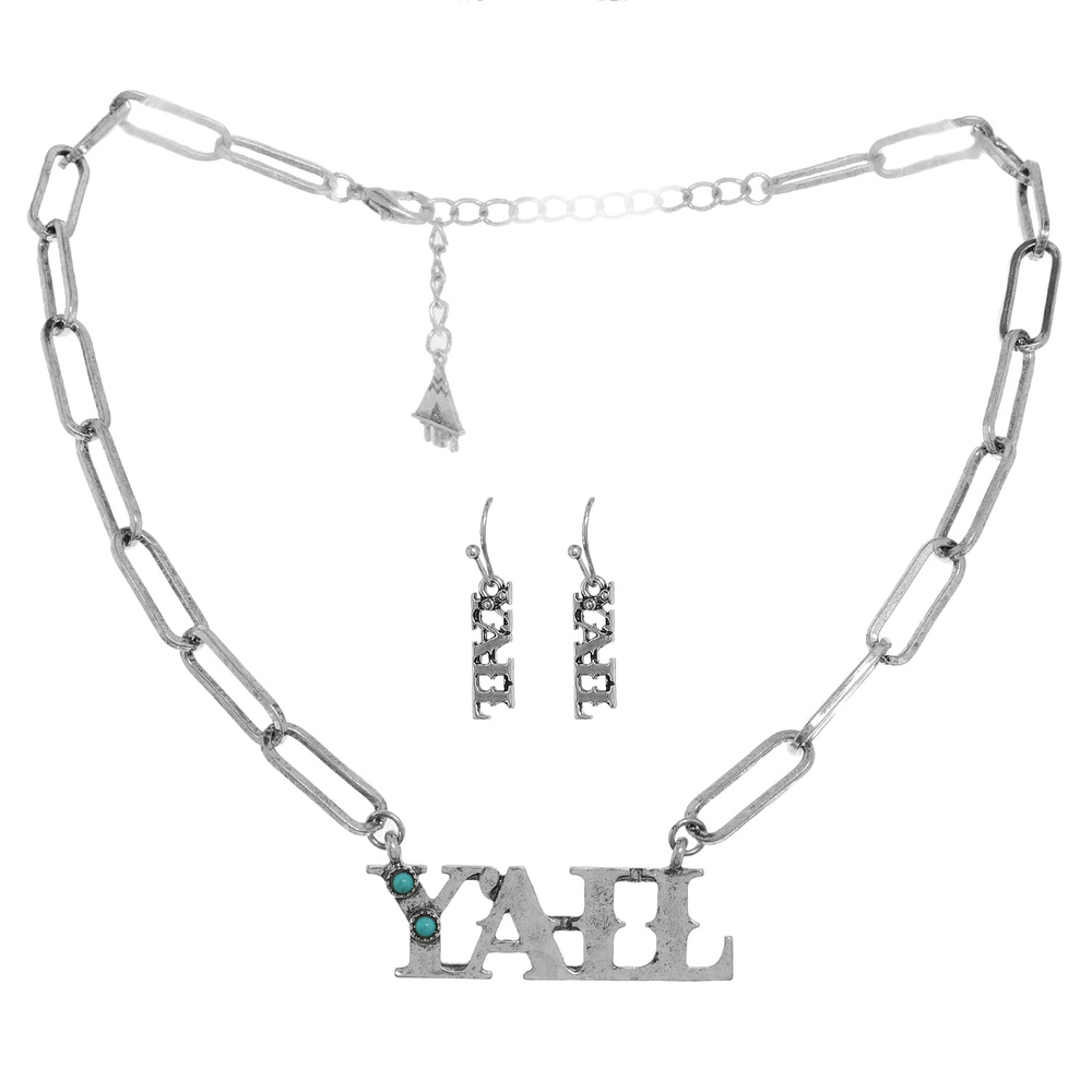 Western Turquoise "yall" Chain Necklace Set
