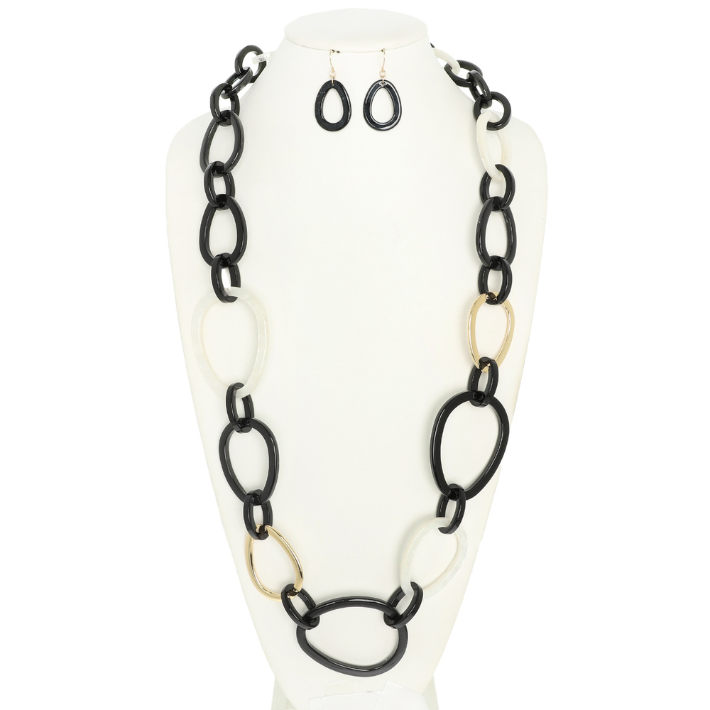 OVERSIZED ACRYLIC ANCHOR STYLE CHAIN NECKLACE EARRING SET