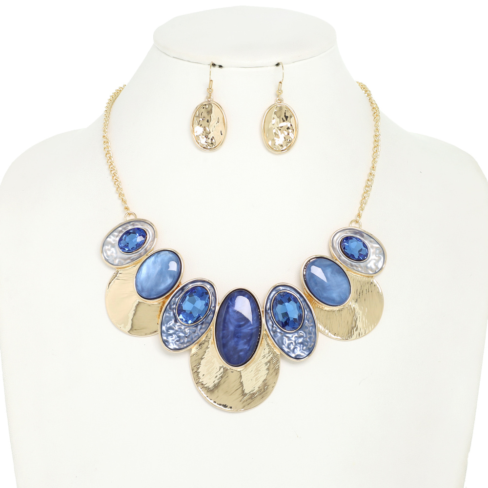 OVAL ACETATE RESIN METAL DISC BIB NECKLACE EARRING SET