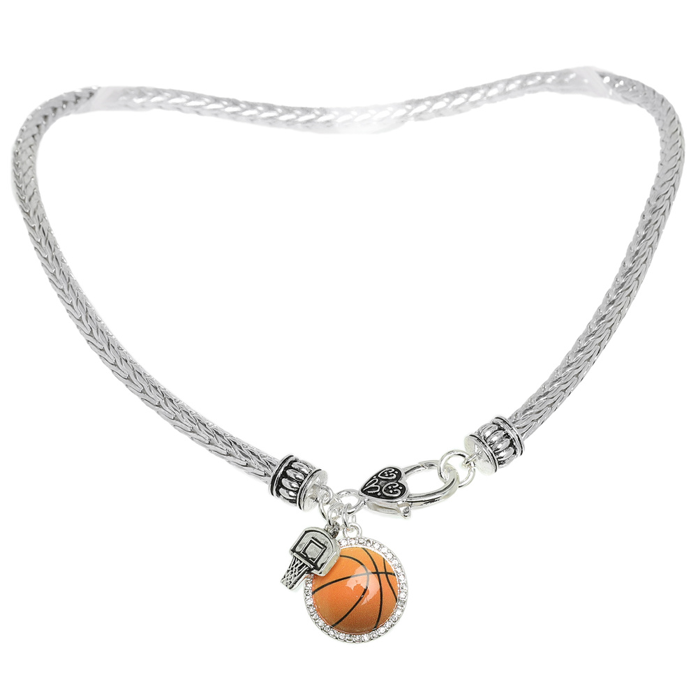 GAMEDAY CRYSTAL EMBELLISHED BASKETBALL CHARM CHAIN NECKLACE