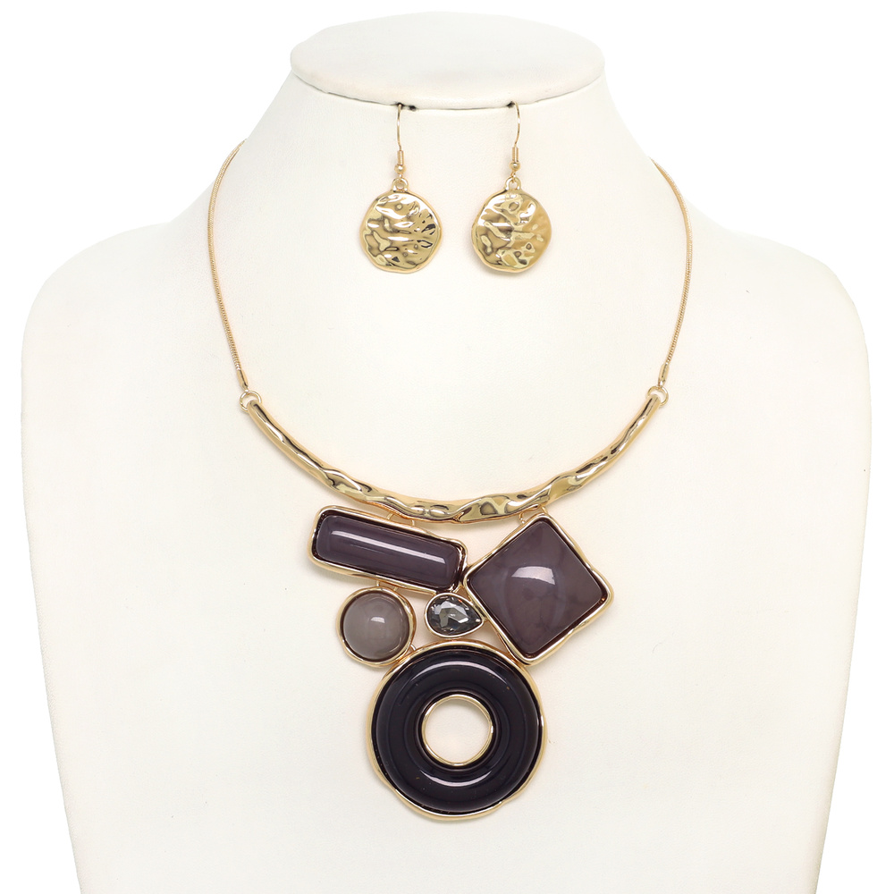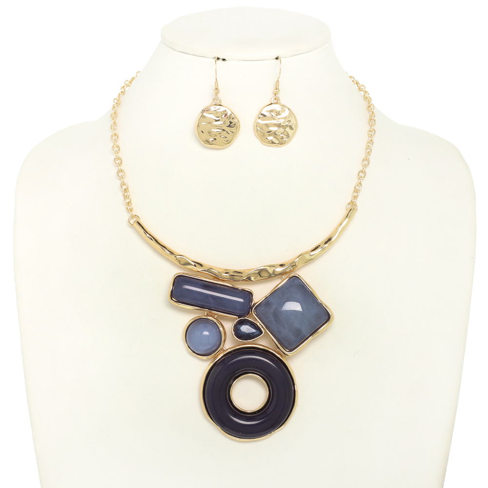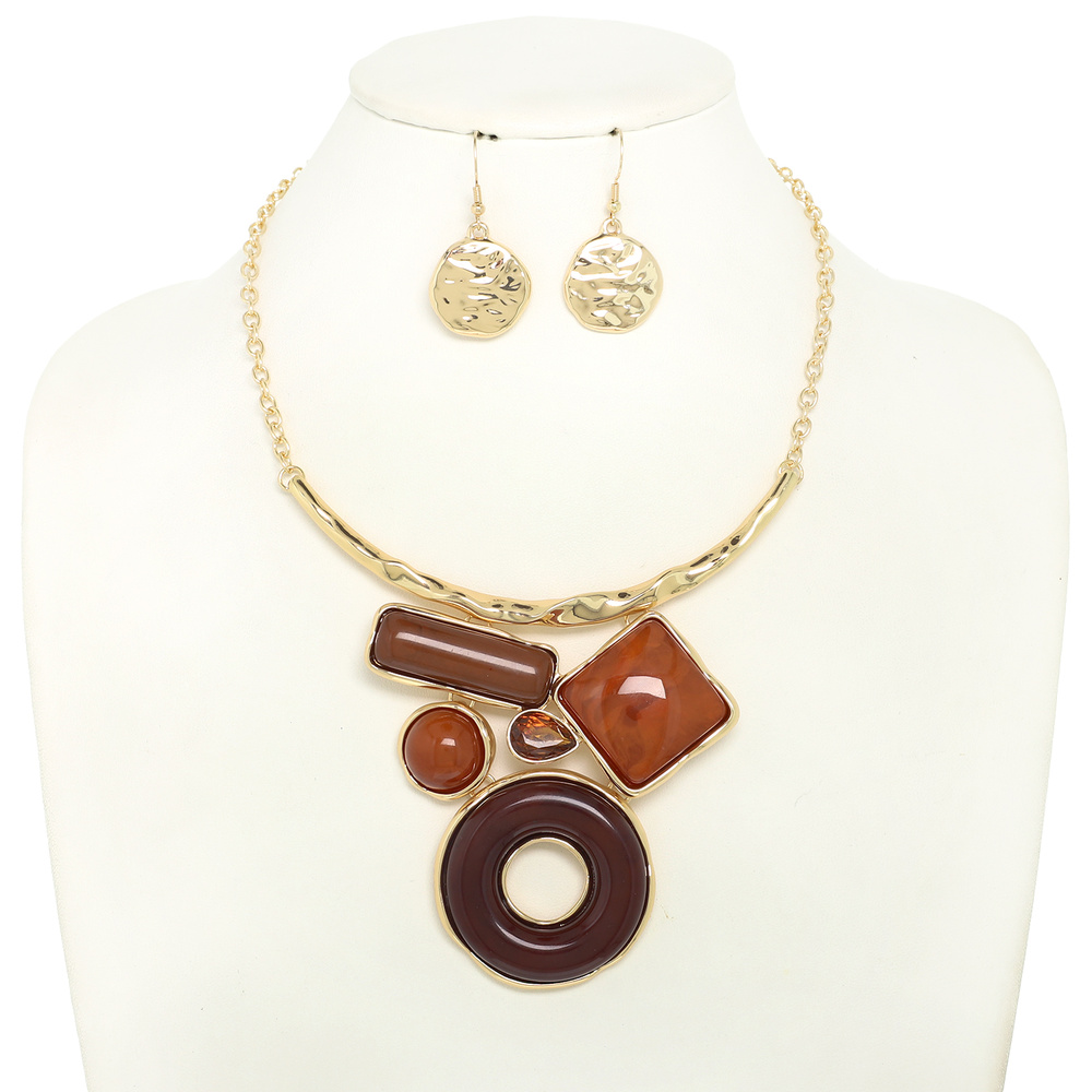 AMORPHOUS CELLULOID ACETATE PENDANT NECKLACE HAMMERED EARRING SET
