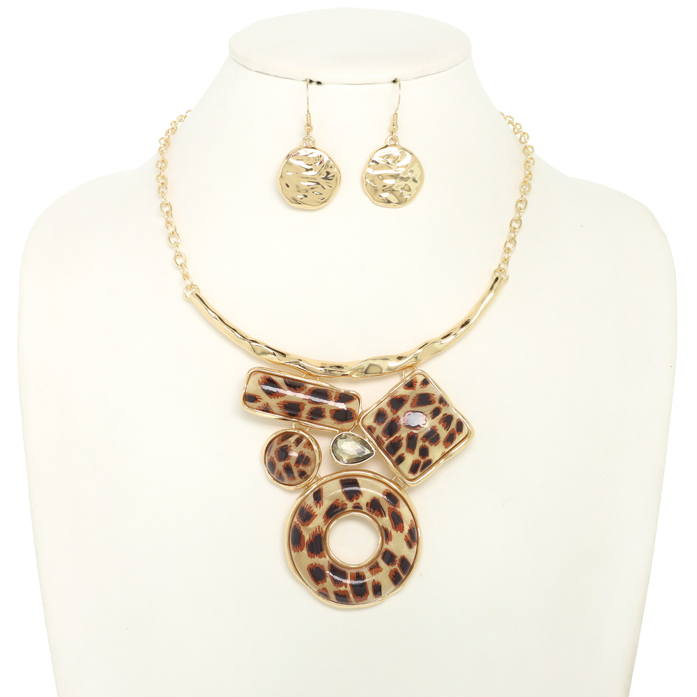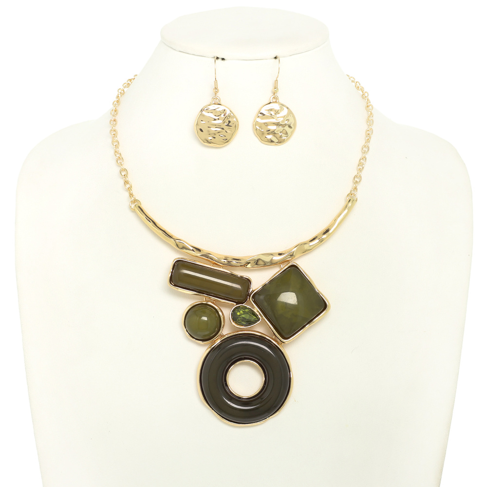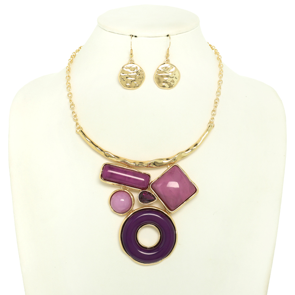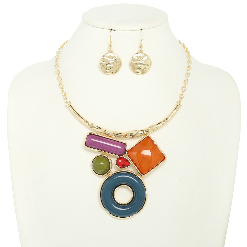 AMORPHOUS CELLULOID ACETATE PENDANT NECKLACE HAMMERED EARRING SET