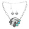TURQUOISE HORSE HEAD PENDANT CHAIN NECKLACE EARRING SET IN OXIDIZED SILVER-TONE METAL