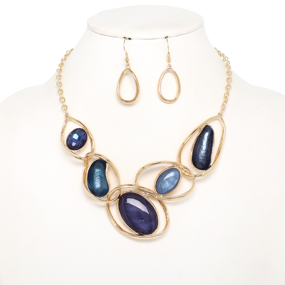 AMORPHOUS BLUE EPOXY STONE AND CRYSTAL CHAIN NECKLACE EARRING SET