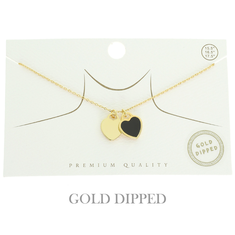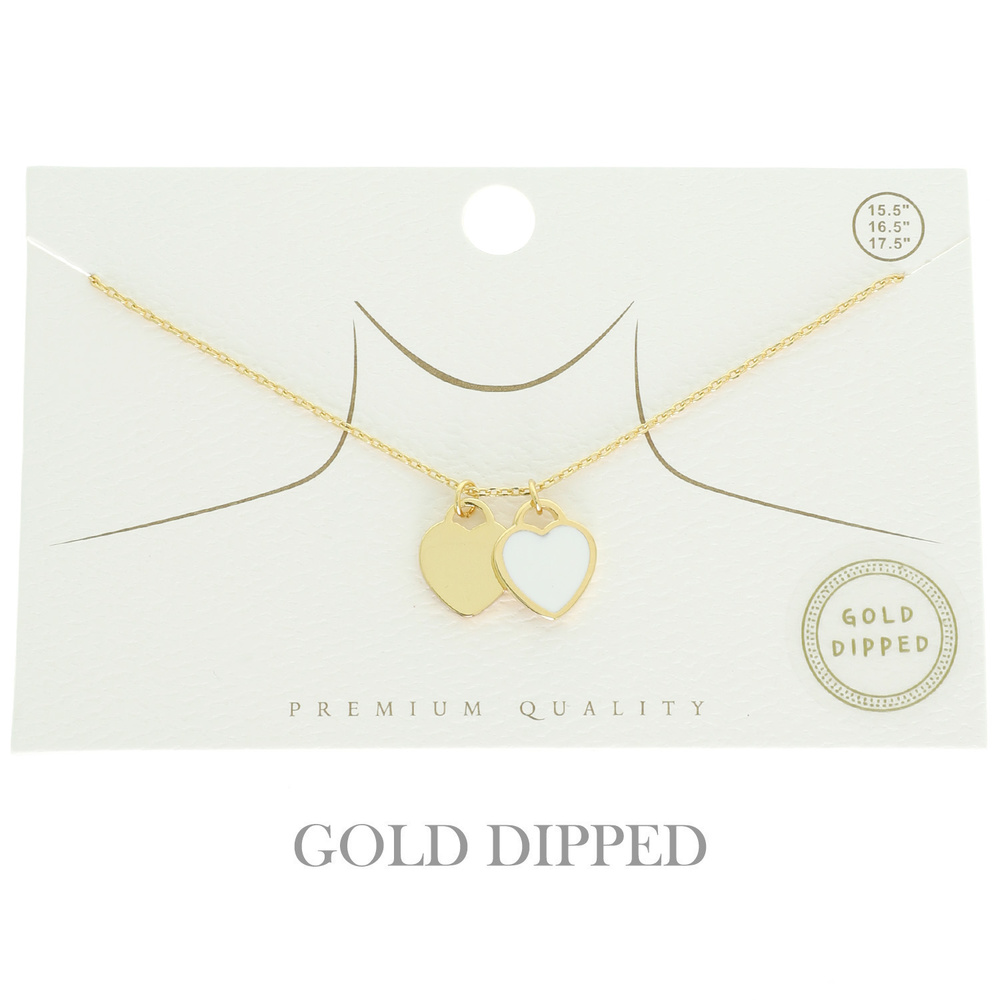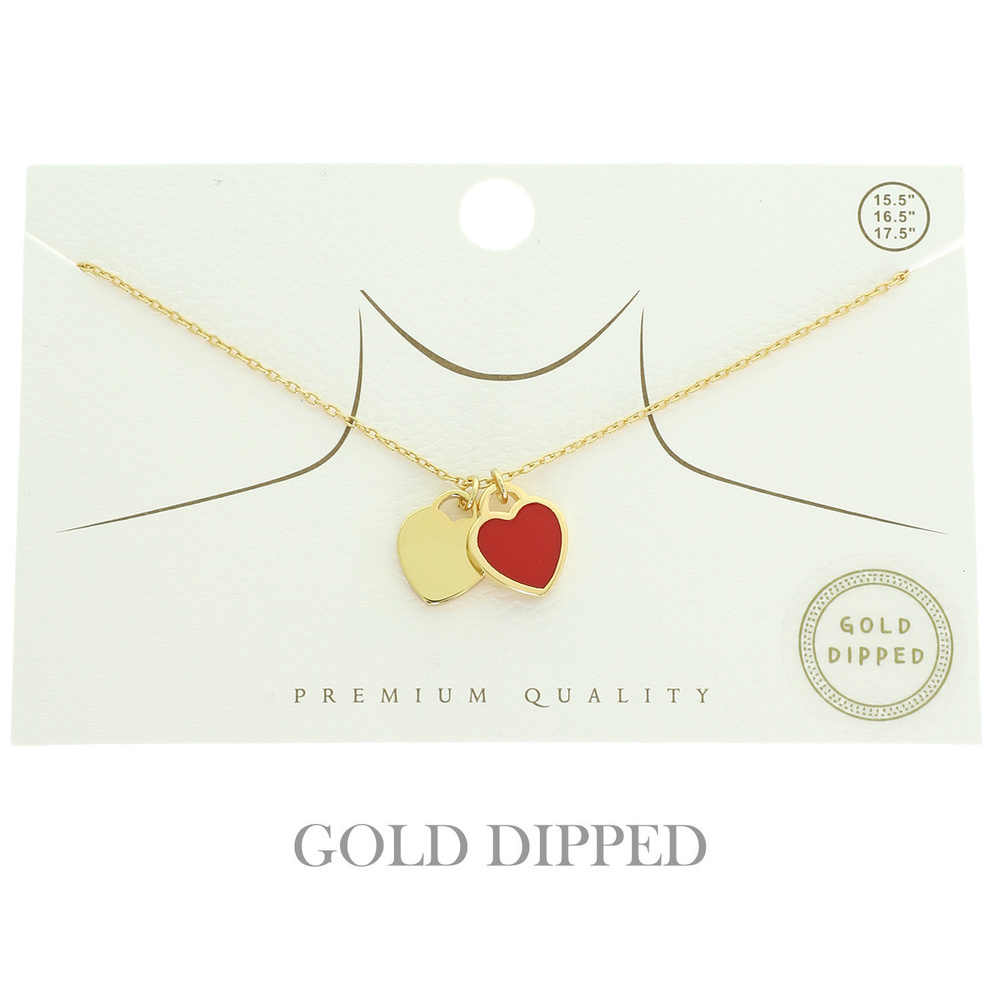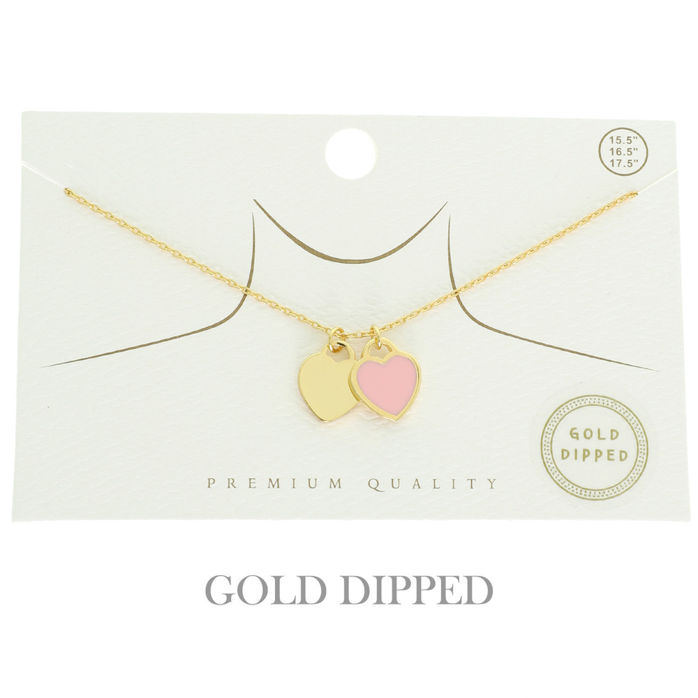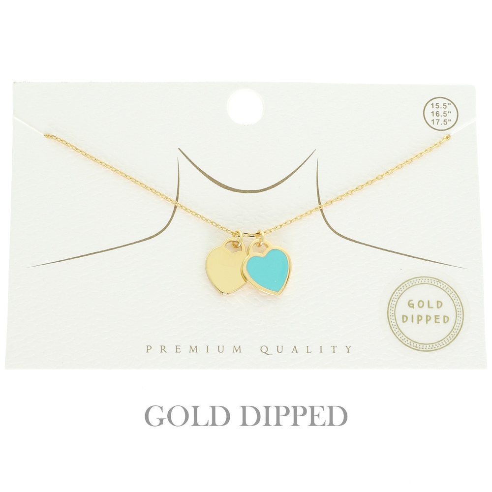 COLORED EPOXY DOUBLE HEART PENDANT NECKLACE IN GOLD PLATING