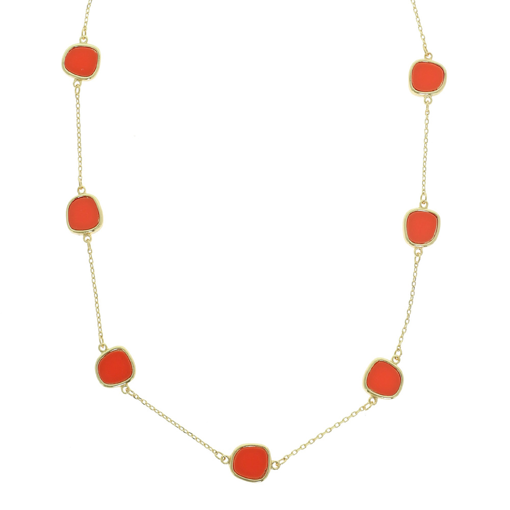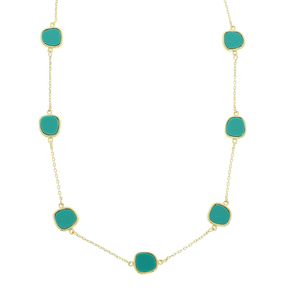 BEZEL-SET COLORED EPOXY IRREGULAR SQUARE STATION NECKLACE