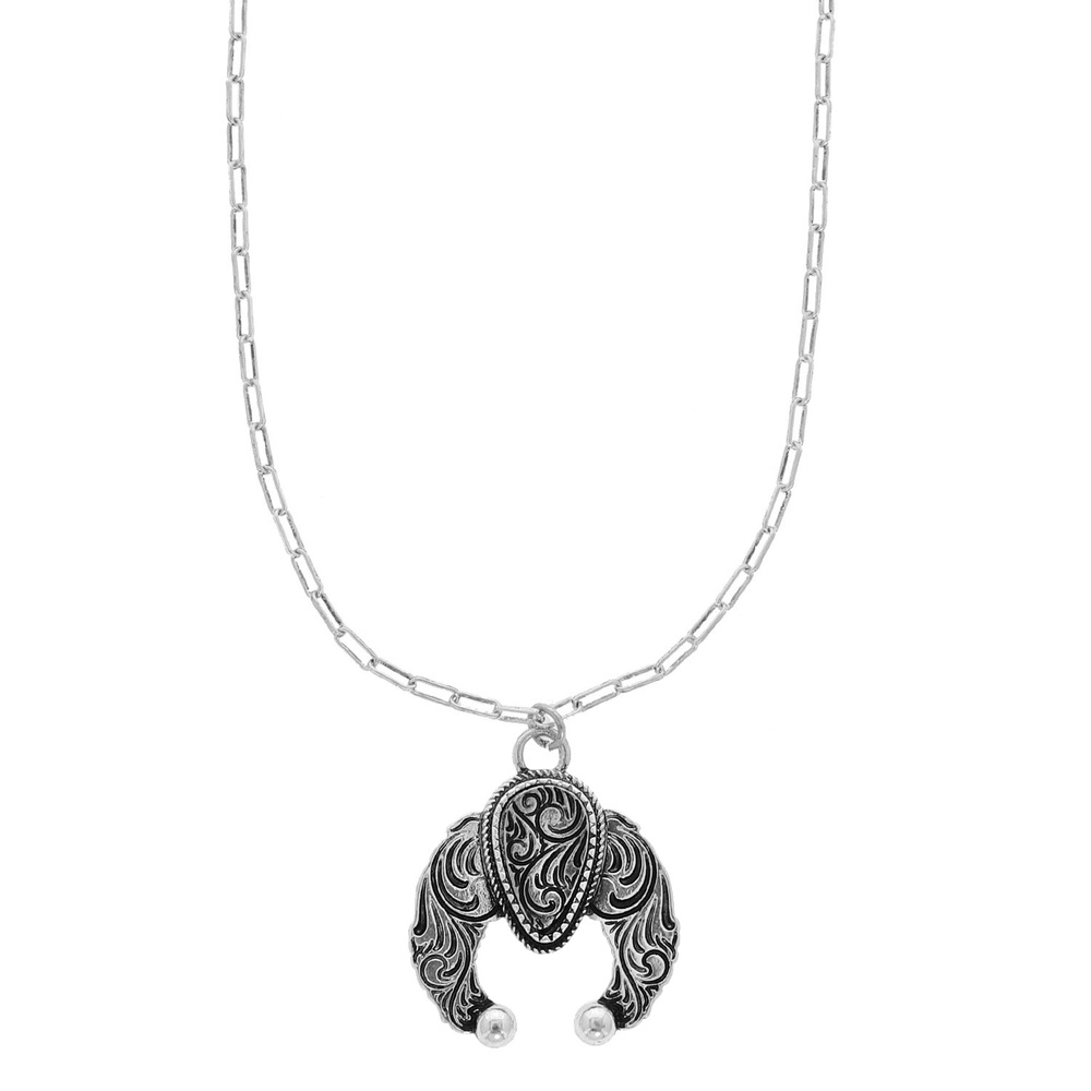 FILIGREE ETCHED SQUASH BLOSSOM CONCHO PENDANT NECKLACE