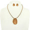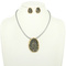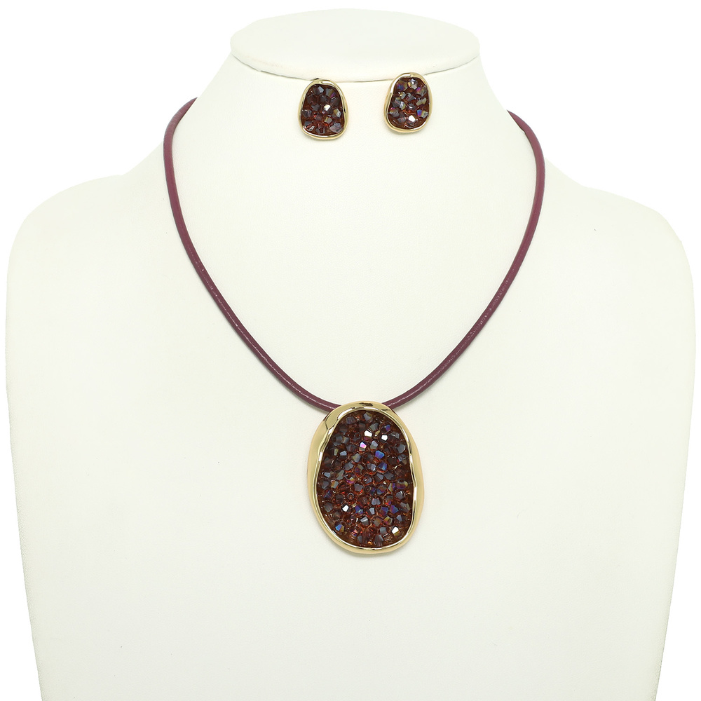 FAUX ROCK CRYSTAL FOSSIL CLUSTER PENDANT CORD NECKLACE EARRING SET