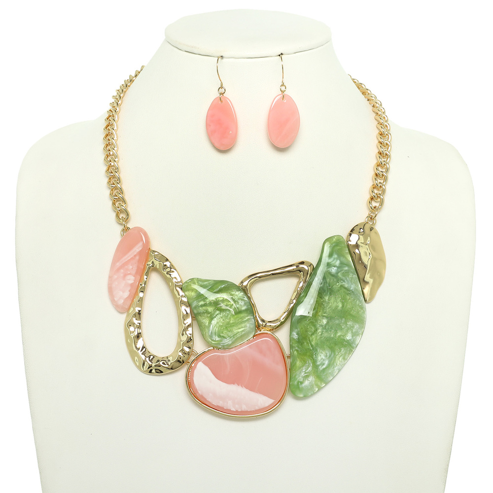 MULTIHUED AMORPHOUS EPOXY MARBLED FAUX STONE NECKLACE EARRING SET