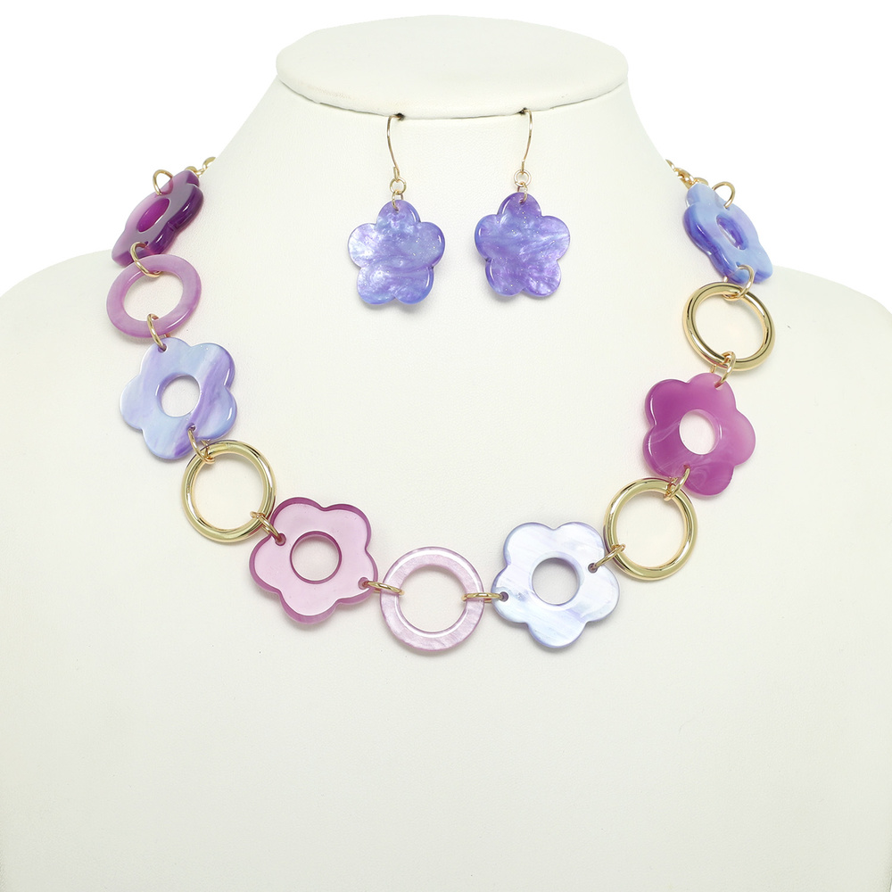 MULTIHUED AMORPHOUS MARBLED FLORAL FAUX STONE NECKLACE EARRING SET